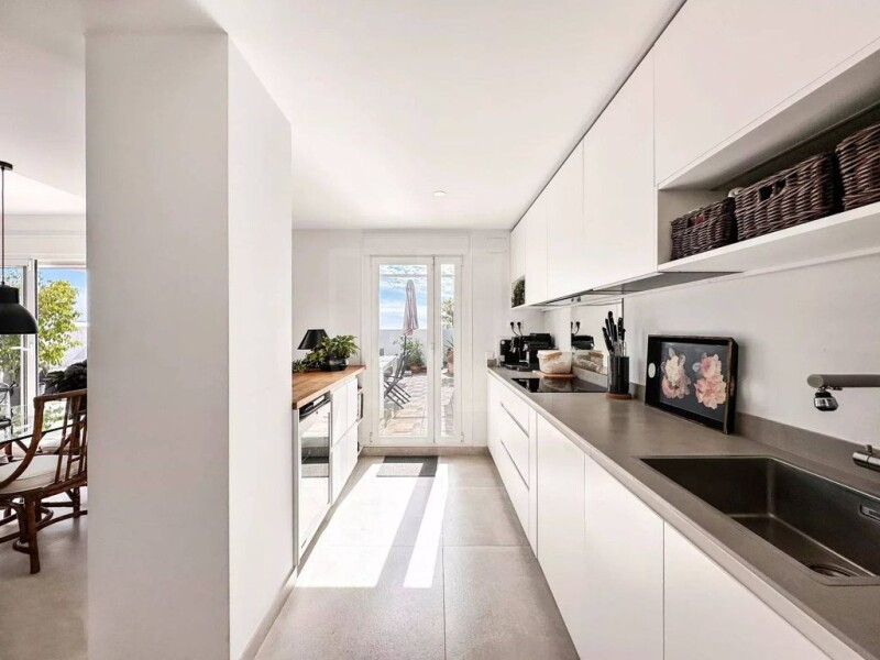Beautiful Penthouse located in Estepona with sea views This exquisite property is set in a prime, elevated position, offering panoramic views of Estepona’s historic old town, stretching all the way to the Mediterranean. On clear days, the terrace reveals breathtaking vistas of Gibraltar and the northern coast of Morocco, making it the perfect spot to enjoy the scenic beauty and year-round sunshine of the Costa del Sol. Positioned on the sixth floor with convenient elevator access, the home has been fully renovated to the highest standards, blending sleek modern style with exceptional craftsmanship. As you enter the property, you are welcomed into a bright, open-plan living space that effortlessly combines the dining area, a contemporary kitchen, and a spacious living room. This seamless layout provides direct access to a large terrace, offering ample space for al fresco dining, relaxation, and enjoying the stunning views. The modern kitchen is equipped with high-end built in appliances, generous countertop space, and abundant storage, making it both a functional and stylish space. The additional balcony off the living room provides a further retreat, offering even more space to unwind. A hallway leads from the living area to the three bedrooms, all of which boast views of the Sierra Bermeja mountains at the rear of the property. The master suite is a true sanctuary, featuring a spacious en-suite bathroom that has been tastefully modernised. The two guest bedrooms share a well appointed bathroom, offering both comfort and convenience. Throughout the home, underfloor heating ensures warmth and comfort, while the addition of 3000W solar panels and a 5KW battery pack highlights the home’s commitment to sustainability. For added convenience, the property includes a private underground parking space in the adjacent building, as well as a storage room. Located in the heart of Estepona, this home offers an enviable lifestyle, with all amenities just a short walk away. The charming old town is less than five minutes on foot, while the beach is a mere ten-minute stroll. The Estepona port is only a five-minute drive, and some of the region’s finest golf courses, beaches, and shopping centres are all within easy reach.
