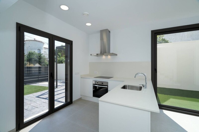 This newly built house is located in the residential area of Requesens in Empuriabrava, just a few minutes walk from the beach and stores. This townhouse has been designed to maximize natural light in the rooms. The first floor consists of a bedroom, a bathroom and a nice living room with kitchenette. It overlooks the garden with swimming pool. A staircase leads to the upper floor, which consists of two bedrooms, a bathroom and the master suite with its own bathroom. There is an outside parking space, the house is cooled and heated by centralized air conditioning.