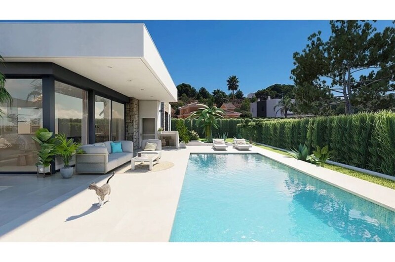 This project is located in one of the residential areas Pla Roig preferred by all the residents of Calpe, due to its proximity to the town centre, the beaches and at the same time because it is a quiet but safe area, as it is located on the outskirts of the town centre. The property has been planned on a single floor, which makes this project practical and comfortable. The whole plot is fenced and has a hedge of cypress trees inside, which provides privacy and a pleasant environment. From the main entrance to the house we access to a hall, from which to the left we access to the day area, consisting of a living room with dining room and open kitchen with island. From the living room we can access to the outside, where we have a covered porch area with barbecue and a large terrace with swimming pool of 40m2. On the right hand side of the house is the sleeping area, with 4 bedrooms: the master suite with dressing room and bathroom, another bedroom with en-suite bathroom and two further bedrooms sharing a bathroom. There is also a laundry area. Outside there is a parking area with a pergola in the form of a sail for two cars. Interested? Do not hesitate and contact us. We are happy to help you further.