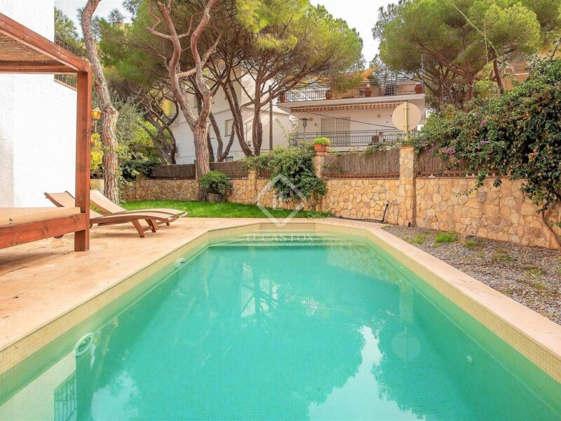 Villa Magdalena is a beautiful property at the centre of Platja d´Aro, situated parallel to the seafront, between the beach and the main street full of shops and lovely restaurants. Villa Magdalena was built in 1953 on a plot of 558 m² and has a surface area of 305 m². Upon entering the plot, we discover a spacious, private garden. The pool is located on the left side of the property, with the outdoor kitchen behind it. The porch is next to the entrance invites you to enjoy the outdoor area where you can entertain and enjoy time with friends and family. When entering the house, we find the first living-room on the right-hand side. The second living-dining room with a fireplace is located on the left-hand side. There is a fully equipped kitchen diner with access to the one-car garage in front. On the left side of the property, behind the pool, there is also the possibility to park another car. The first floor offers 3 bedrooms with where each of them have access to their own private balcony. One of the bedrooms has his own bathroom, where the other 2 bedrooms share one bathroom. The second floor offers a spacious laundry room and a cosy suite. The suite has his own bathroom and access to the private roof terrace. Please feel free to contact us for further information about this wonderful home on the Costa Brava.