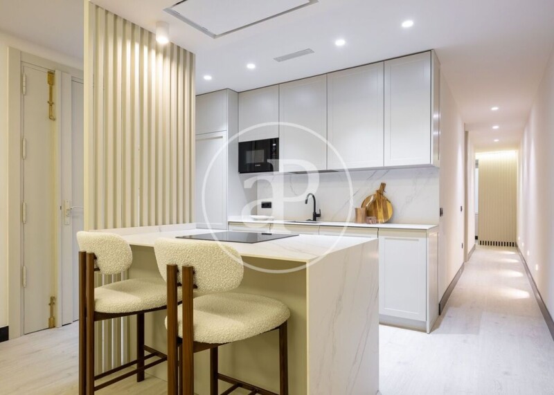 AProperties presents beautiful brand new refurbished flat in Exterior Design Mezzanine, with Premium qualities and fully furnished by renowned interior designer. Its surface area is 141 m² built according to the land registry, and it also has an additional 20 m². The day area consists of a very bright living-dining room and a kitchen open to the living room with a beautiful island and equipped with high-end appliances and a totally independent laundry area. The night area has two bedrooms and two complete bathrooms, one of them en suite. The master bedroom also incorporates a beautiful and practical made-to-measure dressing room. There is also an additional 20 m² of space that can be used as a living room, games area, gym or office. The high-end materials used in all the rooms stand out, with beautiful floors, floor-to-ceiling doors, porcelain tiles and a very careful lighting system. There is ducted air conditioning and individual gas heating. The flat has a storage room in the property. Best to visit. Can you imagine living here?.