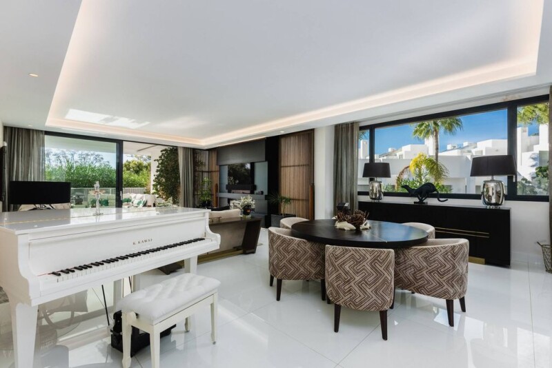 Elegant ground-floor duplex in La Reserva de Sierra Blanca, Marbella Located in the prestigious La Reserva de Sierra Blanca in Marbella, this exquisite ground-floor duplex apartment redefines luxury living. Spanning an expansive 396 m², this residence offers a seamless blend of elegance, comfort, and functionality, making it a perfect retreat in one of the most exclusive areas of the Costa del Sol. The apartment features four spacious en-suite bedrooms, including a master suite designed as a tranquil sanctuary with fitted wardrobes and a luxurious bathroom. An additional powder room enhances the convenience for guests. The open-concept living area is bathed in natural light, integrating a sophisticated dining space and a fully equipped modern kitchen. This space flows effortlessly to a private terrace and a beautifully landscaped garden, perfect for relaxation and outdoor entertainment. The lower level of this duplex provides a private haven, complete with a cinema room, a stylish bar area for hosting, and an additional guest bedroom. For added convenience, the property includes two underground parking spaces and a storage room. Residents of La Reserva de Sierra Blanca enjoy access to resort-style amenities, including manicured gardens, 24-hour security, and a community pool. Situated close to Marbella’s finest schools, town center, and transport links, this property offers both an opulent lifestyle and unparalleled convenience. With its prime location, luxurious design, and exceptional amenities, this apartment presents an extraordinary opportunity to enjoy the best of Marbella living.