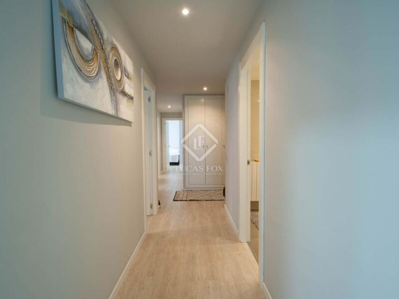Modern new build apartment with sea views located on Carrer Perelló, in the Diagonal Mar area, just a step away from the sea. It is located on the fourth floor of a building from 2016 with an elevator, parking and a communal pool on the roof. The apartment has a spacious living-dining room with access to the 10 m² balcony, an equipped kitchen, 4 bedrooms (one of them with a private bathroom) and 2 complete bathrooms. All bedrooms are exterior and bright. In addition, there is a small storage room-laundry room. The apartment is in perfect condition. It has heating by radiators, central air conditioning, parquet floors, built-in wardrobes, aluminium windows with double glazing and electric exterior shutters. A parking space is included in the price. Please get in touch for more information.