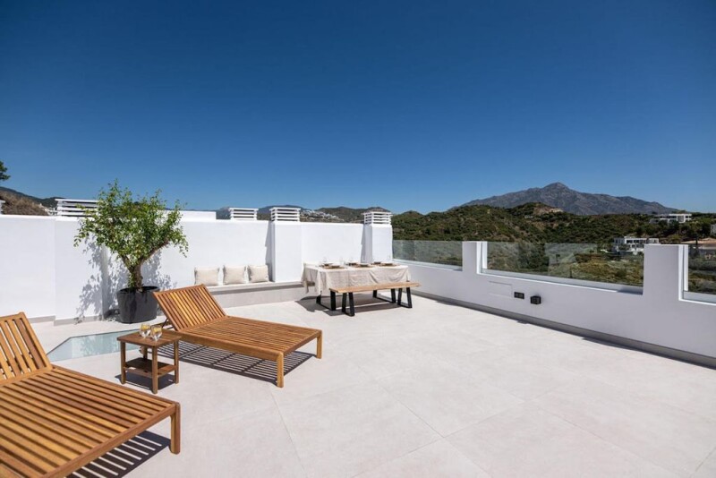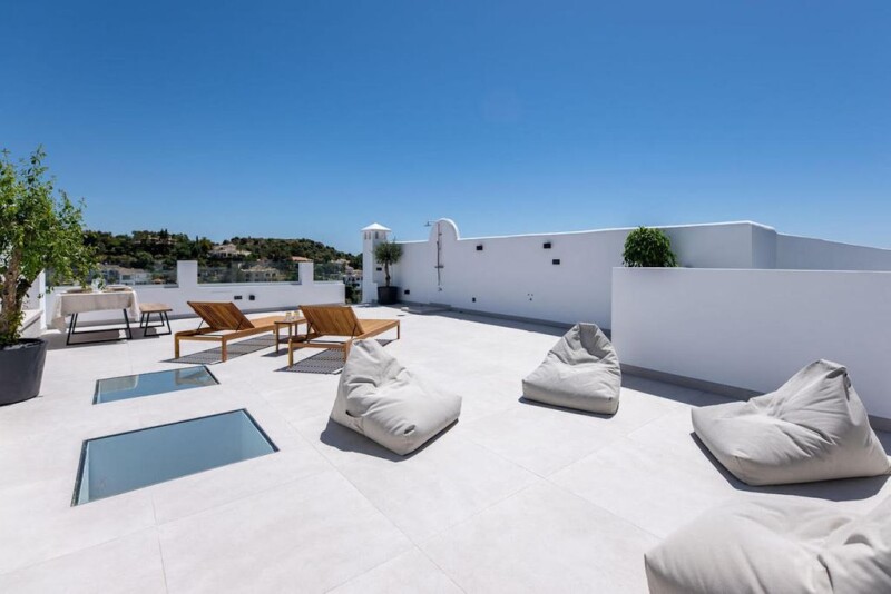 Bright, fully renovated penthouse with spacious roof terrace in an excellent location in La Quinta. Beautiful views of the Mediterranean and La Concha. Exceptionally private with very open feel. Open plan living and lovely chill out outdoor space for sunbathing and alfresco dining. 2 parking spaces are included with this property.