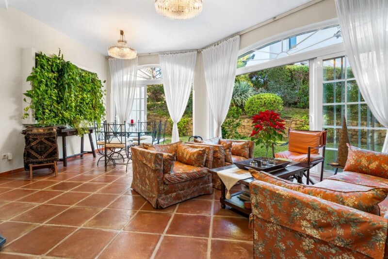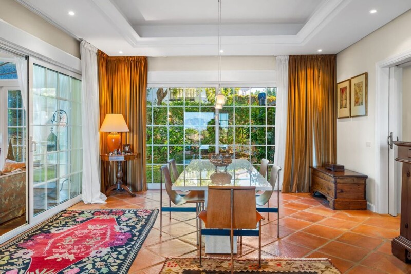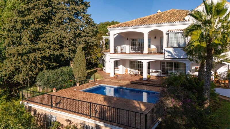 Stunning traditional villa with breathtaking sea views in gated community of El Rosario, Marbella East This stunning six-bedroom, seven-bathroom villa is nestled in the prestigious gated community of El Rosario, offering breathtaking sea and mountain views. Set on a spacious 2,595 m² plot, this 844 m² residence seamlessly blends timeless traditional charm with modern comforts, making it a perfect retreat in Marbella East. Designed for luxurious living, the southwest-facing villa ensures natural light throughout the day while capturing spectacular sunsets over the Bay of Marbella. The first floor houses five spacious en-suite bedrooms, each providing privacy and comfort. An additional guest bedroom is located on the lower level, offering flexibility for family or visitors. The main living area boasts a cozy real wood fireplace, seamlessly connecting to an outdoor barbecue and entertainment space, surrounded by lush greenery that ensures total privacy. An elevator conveniently connects all floors, while the spacious underground garage provides ample parking. High-end features include underfloor heating in bathrooms, air conditioning, electric shutters, a 3,000-liter fresh water tank, and a private well for garden irrigation. Located just 10 minutes from Marbella’s center and 30 minutes from Málaga Airport, this villa is moments away from renowned golf courses, international schools, restaurants, supermarkets, and the Royal Tennis Club. With beautiful beaches and exclusive beach clubs nearby, this home offers an unparalleled lifestyle in one of Marbella’s most sought-after residential areas.