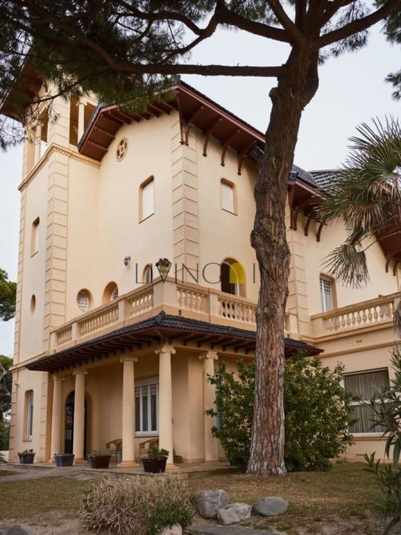 On the Maresme coast, this emblematic classic-style estate stands on the frontline of the sea, on the Sant Vicenç de Montalt Promenade. Unique for its heritage value and privileged location with direct access to the beach, this three-story villa with a tower is located 30 minutes from Barcelona. The house was built in 1917, has a plot of 2400 m2, with a construction of 664 m² and features 10 bedrooms, 6 bathrooms, elevator, and pool. The main entrance is defined by a porch framed by columns. Inside the house, an elegant hall with high ceilings connects to the large living room, dining room, and a luminous gallery. The kitchen, equipped with hospitality furniture and a service area, is also on this floor. On the second floor are four bedrooms, a suite, and three bathrooms, three of the bedrooms have access to their own terrace overlooking the sea. While on the third floor, there are six additional bedrooms and three bathrooms, with access to the viewpoint that offers panoramic views of the Mediterranean. The house features an elevator, heating, air conditioning, fiber optic, and emergency stairs. A spacious garden surrounds the property, with shaded areas provided by tall pine trees. The private pool at the back connects to a barbecue area and garages. Additionally, on the same property, there is a small house with a living room, two bedrooms, kitchen, and terrace. Located 50 meters from the El Balís nautical club, on the Marqués de Casa Riera Promenade, this property is part of one of the most sought-after areas on the Maresme coast. The Renfe station in the neighboring town of Caldes d'Estrac is a few meters away. The area is well connected by the Nacional II and the C32 highways. Sant Vicenç de Montalt offers all services in a privileged natural environment with beaches and forests, as well as a special microclimate throughout the year.