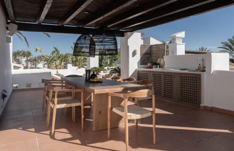 Renovated duplex penthouse for sale in the fantastic area in Alcazaba beach, Estepona This stunning luxury duplex penthouse is located in the prestigious Alcazaba Beach complex, situated in the beautiful coastal town of Estepona, Malaga. Offering a spacious and modern living space, this property is perfect for those seeking a luxurious and comfortable lifestyle. With 2 bedrooms and 2 bathrooms, this duplex penthouse has a total built area of 115m², providing ample space for relaxation and entertainment. The property also features a large terrace of 132m², offering panoramic views of the stunning surroundings. The communal pool and garden provide a tranquil and serene ambiance, perfect for unwinding after a long day. The property also offers a range of luxurious amenities, including air conditioning, a fully fitted kitchen, and a cozy fireplace. For those looking for ultimate relaxation, this duplex penthouse also features a jacuzzi and sauna, allowing residents to indulge in a pampering spa-like experience. The complex also includes a fully equipped gym, perfect for maintaining a healthy and active lifestyle. With 24-hour security service and surveillance cameras, residents can enjoy peace of mind and a safe living environment. The property also offers a guest toilet, laundry room, and fitted wardrobes for added convenience. The location of this property is ideal, with the beach just a short distance away. Close proximity to shops, schools, and the town center ensures that residents have easy access to all amenities. The property is in excellent condition, recently renovated and refurbished to the highest standards. Optional furniture is available, providing residents with the opportunity to personalize their living spaces. Don't miss the opportunity to own this luxurious duplex penthouse in Alcazaba Beach, Estepona. Contact us today to arrange a viewing and experience the epitome of luxury living.