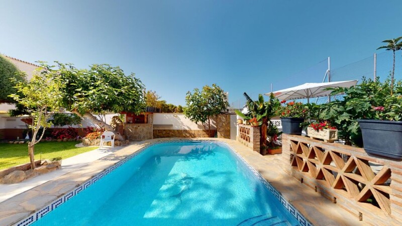 Lovely 3 Bedroom Villa with Pool in Marbella The location The villa is located in Marbella, Elviria. Santa Clara Golf Marbella is at 2.5 km away and Marbella Club Golf Resort is at 2.6 km away. Playa del Real de Zaragoza and Marbella Jet Ski are at 0.9 km away. Malaga Airport is 30 minutes away and Gibraltar Airport is 1 hour away. The property The villa is built on 2 levels and has 3 bedrooms and 3 bathrooms. It has a lovely outdoor pool with a garden, barbecue, bar and a lovely vegetable garden. A carport with 1 parking space. Main Floor From the entrance a small hallway leads you to the living room area with a dining table and a fireplace. A second living room area that is connected to the lovely kitchen that is very spacious. The kitchen is fully furnished and equipped and has a second dining area. A bathroom. Top Floor Here we have 3 bedrooms. One master bedroom with a private bathroom and a balcony. 2 bedrooms with a shared bathroom.