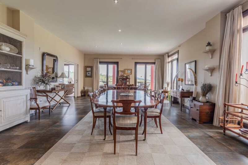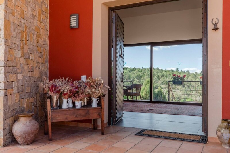 We present a real gem and opportunity in the select market of recreational and hunting estates in the incomparable Serranía de Cuenca. This is an exclusive property with 620 hectares of land, of which 550 hectares are protected by a 2 m high fence with 11 gates. Within these 550 hectares, there are 360 animals of different species, including 220 deer, 120 wild boar, 30 mouflon and 30 roe deer in the private hunting reserve. The main house and the annexe for guests have more than 1.200 m² of constructed area, distributed in 3 zones, with 9 double rooms, 10 bathrooms, 2 spacious and luminous living rooms with fireplace, a large terrace and a covered and swimming pool of 15×5m. One of the 100 m² double rooms is located on the upper floor and has a terrace, jacuzzi, living room and fireplace. The guest annexe has a living room, bathroom, kitchen and 2 bedrooms. Among its qualities, we highlight the exterior carpentry of aluminium with thermal bridge break and double laminated security glass, interior carpentry of varnished wood, installation of heating by aluminium radiators and telephone connection, as well as internet. Two stone masonry walls cross the house from side to side, giving it an avant-garde design within contemporary architecture. Indoor and outdoor dining rooms with multiple windows with enchanting views of the pine and oak trees, ready to be enjoyed in privacy, as well as with a large number of guests. The house is supplied by a 16,000 litre/hour well, plus a 1,000 litre water tank, two independent electric groups with batteries, two petrol tanks of 1,000 litres each and 25 photovoltaic panels. In addition, a river cuts the property in half with a dam in a natural meadow. At 150 m from the house there is a large paddle tennis court with floodlighting, at 300 m there is a 500 m² shed for storage of crops, meat (freezing), machinery, vehicles, and also a work room with bathroom and basketball facilities. On its roof there are photovoltaic panels. At 350 m from the house, there is a stable for 6 horses, a kennel for 5 dogs and a hen house, with 9 hens at the moment. The farm is located in the municipalities of Garaballa, Landete and Talayuelas, 115 km from Valencia and 260 km from Madrid. It is important to note that 4 trains (AVE) run daily, taking 1,5 hours from Madrid to Requena/Utiel, and 0,5 hours from Valencia. The station is 40 km from the house. The estate's caretaker will comfortably pick up the guests. Enjoying more than 600 hectares of landscapes on your property where you can enjoy magical corners and practice your hobbies in permanent contact with nature, relax in the spacious house and its facilities with total privacy, organise hunts in an estate with these specifications and have your own natural resources so close to Valencia and Madrid, are qualities very difficult to find in a recreational real estate asset. We offer you the opportunity to acquire this magical finca.