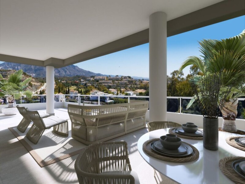 This modern development is situated in Marbella, this area has been recognised as one of the best golfing and leisure destinations as within a radius of 20km you can access everything this fantastic region has to offer. The uniquely modern building that is faces east and comprises 14 spacious apartments and penthouses in Mediterranean style, located in beautiful natural surroundings on a hill with views of Golf Valley. Every home has 3 bedrooms, with a spacious master bedroom with en suite bathroom and two additional bedrooms with a second bathroom. Every home has an allocated parking space, two are included with the penthouses, and a spacious storage room. The Crest also provides great communal facilities that include a pool with solarium area and showers, attractively landscaped space, private access. The development provides a sense of exclusivity and privacy that is unrivalled in the area.