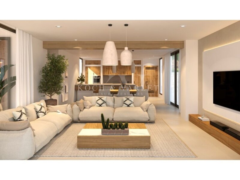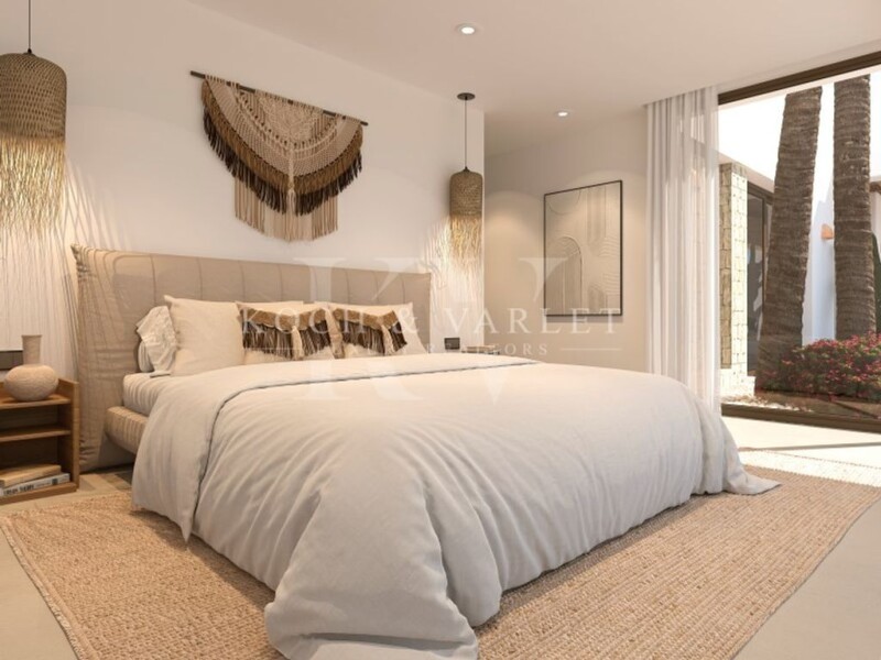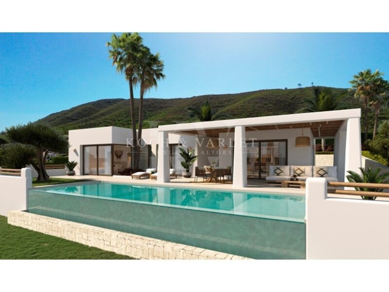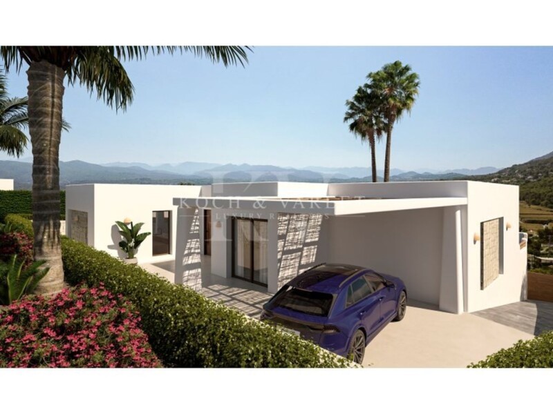 Koch & Varlet Luxury Realtors is proud to exclusively present Villa Adela, a stunning Mediterranean-style villa located in the sought-after residential area of Lomas del Rey in Javea, on the northern Costa Blanca. This single-story villa project, with the building permit already obtained, is ready to begin construction as soon as a buyer is found. The villa stands out for its elegant architecture, combining a weathered white facade with hand-cut dry stones in a unique rounded style. The villa's refined interior is designed with high-quality materials, such as microcement in the bathrooms and flooring, along with oxidized double-glazed aluminum windows. The bedrooms are equipped with exterior electric shutters, while the bathrooms feature black fixtures, adding a modern and sophisticated touch. The villa offers a spacious open-plan living-dining area connected to a fully equipped kitchen, with direct access to the infinity pool and the sunny west-facing terraces. It also includes an adjacent laundry room and a guest toilet. The sleeping area consists of two double bedrooms sharing a bathroom, as well as a master bedroom with an en-suite bathroom and dressing room. The house will be equipped with underfloor heating, ducted air conditioning, a garage for one car, and an outdoor carport. Outside, a 42 m² infinity pool with a shallow area called 'beach' is surrounded by 200 m² of terraces, part of which is covered by a pergola, ideal for outdoor dining year-round. The villa enjoys breathtaking views of the surrounding mountains, the valley, and the Montgo, the emblem of Javea. Exceptionally located just 5 minutes from an international school under construction (scheduled for completion in December 2024), a 6-minute drive from the fine sandy beach of Arenal, and close to several restaurants, Lomas del Rey is a new residential area offering modern amenities such as sewer systems and underground cables. The adjacent mountain is part of the Granadella Natural Park, ideal for walks with spectacular sea views. To arrange a visit or obtain more information about this exceptional project, please do not hesitate to contact us.