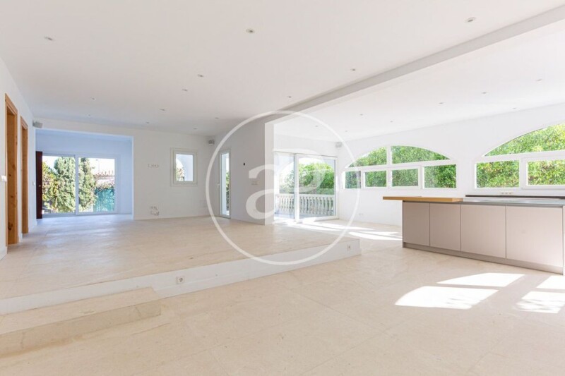 This meticulously refurbished two-storey detached villa offers a sophisticated lifestyle with unparalleled panoramic views of the majestic mountain, the glittering Mediterranean Sea and the iconic Bellver Castle. Upon entering, you will be greeted by a wide garage with a porch that opens onto a swimming pool, creating a welcoming and relaxing atmosphere from the very first moment. Moving inside, you will be greeted by an elegant entrance hall followed by a convenient cloakroom. The bright living/dining room, adorned with a charming fireplace, invites you to enjoy unforgettable moments in a warm and comfortable atmosphere. The spacious kitchen, fully equipped and modern in design, opens onto the porch that gives access to the garden and swimming pool, creating the perfect setting to enjoy the outdoors in total privacy. In addition, this impressive property features an extra room for laundry and storage, as well as an individual flat complete with its own kitchen and bathroom, ideal for guests or for use as an independent workspace. On the first floor, you will find two spacious bedroom suites, each with its own bathroom, one of which is the spectacular master suite. Both rooms have private terraces offering panoramic views of the stunning bay of Palma, creating a dream setting to enjoy the breathtaking Mediterranean scenery. This property is equipped with state of the art security systems for your peace of mind, as well as gas central heating and air conditioning to ensure your peace of mind. With a privileged location in Genoa, this property combines elegance, comfort and privacy, offering you the opportunity to experience Mediterranean living at its best. Don't miss the opportunity to make this villa your new luxury home in Mallorca!.