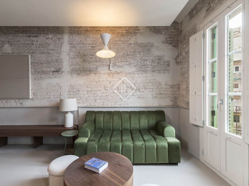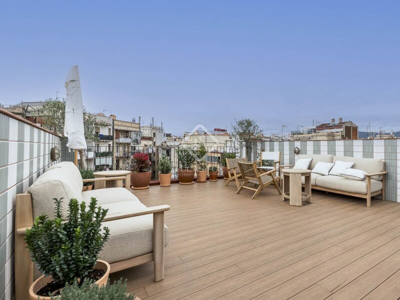 This new development is located in the charming Sant Antoni neighbourhood of Barcelona's Eixample district. The classic style building dates back to 1900 and has been completely renovated, offering a lift and attractive communal areas. The communal areas of the building include parking spaces for bicycles, a wine cellar, a laundry room and a communal terrace with outdoor showers, a lounge and a social bar. The building consists of a basement level, a ground floor level, seven upper floors and a rooftop. Offering twelve apartments and two duplex loft properties, this development provides homes that are fully furnished, equipped and ready to move into. The kitchens come with fitted electrical appliances (dishwasher, oven, microwave oven, coffee maker and refrigerator), Zucchetti taps and porcelain countertop. This 2-bedroom penthouse property is on the top floor and is the result of a clever design concept by which a single space may be transformed with a system of sliding panels. The beds can be concealed in closets during the day, and the kitchen and bathroom are at the centre of the home. What's more, it boasts 54 m² of magnificent private terrace space. Feel free to contact us for further information.