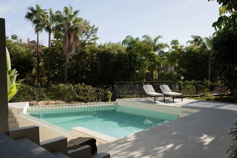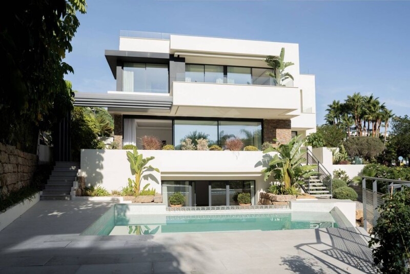 Nestled in the picturesque locale of El Campanario on the New Golden Mile, this exquisite villa represents the pinnacle of luxury living on the Costa del Sol. With a generous built area of 479m² and set on a 649m² plot, this property offers an abundance of space and privacy. The villa is classified as a sole agency listing, ensuring a unique opportunity for discerning buyers. The villa boasts four spacious bedrooms and four well-appointed bathrooms, complemented by an additional guest toilet. Each room is designed with comfort and elegance in mind, featuring fitted wardrobes and underfloor heating throughout. The fully fitted kitchen is equipped with modern appliances and ample storage. The property comes fully furnished, allowing for a seamless transition into your new home. Outdoor living is at its finest with a private pool and garden, offering stunning views of the surrounding mountains. The villa's terraces, both covered and uncovered, provide ideal spaces for relaxation and entertainment, while the solarium and balcony enhance the outdoor experience. The property is equipped with a water tank, electric blinds, and double glazing, ensuring comfort and convenience. Additional features include a basement, storage room, and a private garage, providing ample space for all your needs. The villa is equipped with modern amenities such as air conditioning, an alarm system, video entrance, and fibre optic internet. Its prime location offers proximity to essential amenities, schools, shops, and transport links, as well as easy access to the beach and nearby golf courses, making it a perfect choice for those seeking a luxurious lifestyle in Estepona.