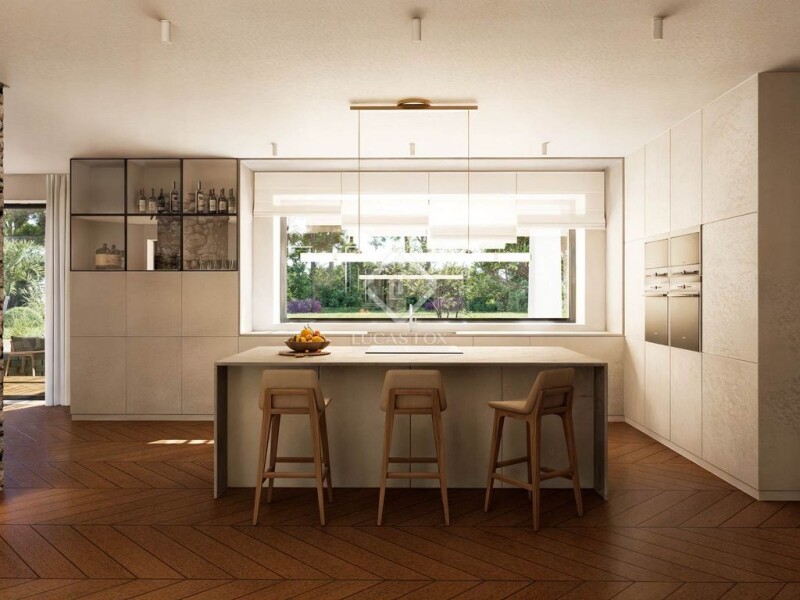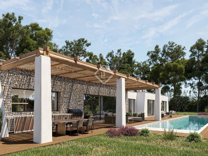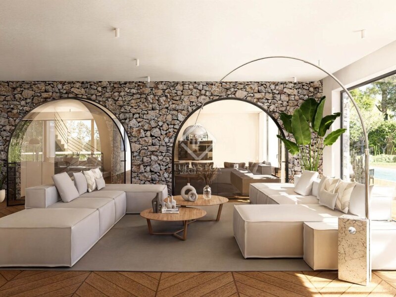 Nestled in the heart of one of Ibiza’s most picturesque valleys, this exquisite finca will offer a perfect blend of traditional charm and modern sophistication. Surrounded by vast rural landscapes, this serene retreat spans an impressive 51,000 m² of lush agricultural land, providing complete privacy and breathtaking sea and sunset views. Crafted with the finest materials and built to the highest standards, this property promises an unparalleled living experience. Every detail has been meticulously designed, honouring the island’s heritage while incorporating contemporary elements for ultimate comfort and style. The building permit will soon be granted, and construction is set to begin in Q4 2025. This stunning finca has been thoughtfully designed to preserve its authentic Ibicenco character while integrating contemporary elements. Traditional handcrafted stone walls, both inside and out, pay homage to the island’s rich history, while the elegant thermo-treated ash wood pergola introduces a sleek, modern touch that enhances the natural surroundings. The finca offers two convenient access points: A charming front passageway with polished concrete steps leading to a welcoming courtyard, and a secure electric gate allowing vehicle access to the carport and underground garage for added privacy and convenience. The vast 5-hectare plot embraces the natural beauty of Ibiza, offering endless possibilities for outdoor living, creative landscaping, or sustainable agricultural projects. Whether you envision serene relaxation or an active lifestyle, this expansive estate provides a breathtaking backdrop for both. The main living area features a stunning dark wood herringbone floor, beautifully complemented by natural Ibicenco stone accents. The open-plan kitchen and living space flow seamlessly onto the outdoor terraces, blurring the lines between indoor and outdoor living. Expansive glass doors flood the interiors with natural light, creating a bright and airy atmosphere, perfect for entertaining or unwinding in complete tranquility. This remarkable property will be an exclusive sanctuary in the heart of Ibiza, offering luxury, privacy, and a deep connection to nature, all within close reach of the island’s finest destinations. Please contact us for further information.