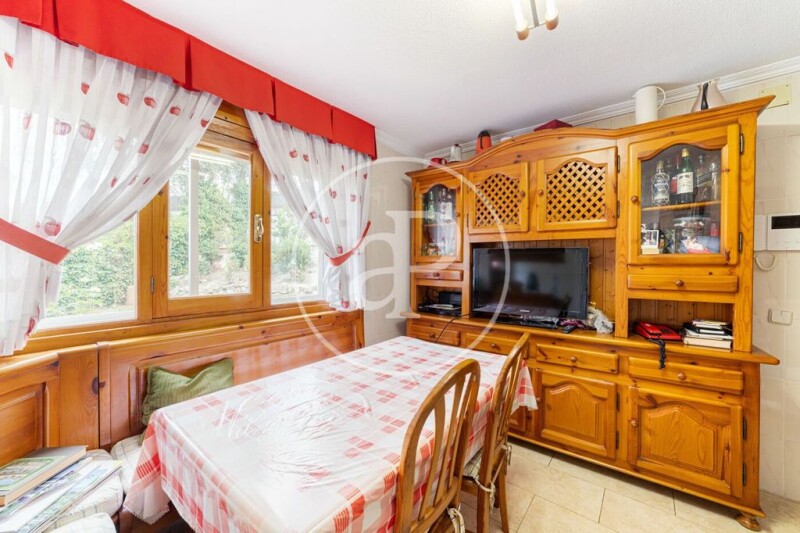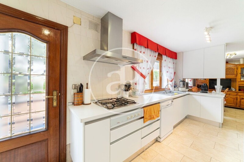 AProperties Real State presents this solidly built house with magnificent views, beautiful garden with swimming pool and solarium and different environments. The house has about 337 m² built on a plot of 1822 m². It has 5 bedrooms, 3 bathrooms and a toilet. The main floor of the house has a spacious hall, living room with direct access to the kitchen and the garden, two bedrooms, an office and a large living room with large and bright windows and a large fireplace. On the first floor, two spacious bedrooms, one of them with fireplace, terrace with views and a complete bathroom. A staircase leads to a lower floor where there is a spectacular wine cellar, a spa area with jacuzzi, a games room and a garage for two cars. In the garden there is a variety of trees, flowers and plants cared for with the utmost care of the owner. Santo Domingo is a pleasant residential area, located at Km. 28 of the A1 motorway. It has 24 hour private security and perimeter video surveillance. It is communicated with Madrid by bus with regular departures from Plaza Castilla and metro network (Hospital Infanta Sofía) 10 minutes away. The development has a shopping centre with 42 establishments that cover everyday needs, social club and children's playground, sports centre and skatepark. The SEK bilingual private school and Trinity College are 5 and 10 minutes away respectively. Santo Domingo is a development located in a privileged natural environment, dominated by holm oaks and scrubland, and surrounded by green areas. Can you imagine living here?.
