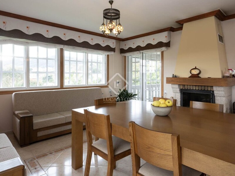 This property built to the highest standards is located just a few minutes from the centre of O Rosal, and consists of a main house and several outbuildings on a large plot of 4.700 m² with a beautiful, wooded area. The perimeter of the property is well defined and gives it a lot of privacy. Accessed through a large automatic gate, there is an ample parking area as well as a covered garage for several vehicles. The main house has three levels of approximately 150 m² each. The main floor has a practical layout with an entrance hall connecting a spacious living-dining area with a kitchen equipped with the best appliances. A long corridor leads to the sleeping quarters with three generously proportioned bedrooms, one of them en-suite, and a shared bathroom. There is also a guest toilet on this level. The upper floor of the property is unfinished and offers an additional 150 m² of living space that could be used with varied purposes, from additional bedrooms to large working spaces offering great views of the Galician countryside. The ground floor is at plot level and unfinished. It offers an additional 150 m² of living space which could be converted into a separate dwelling with its own entrance and completely independent from the existing house. There is a garage for two small vehicles at this level. The plot is very large and offers four well-defined spaces. A beautiful, wooded area with a pond, a large surface with a very well-built garage that could be transformed into a guest house, an orchard with fruit trees and a smaller area with a barn. This property is ideal for a hotel venture or for those owners who want to have two or even three independent and private dwellings on the same property. Do not hesitate to contact us for more information.