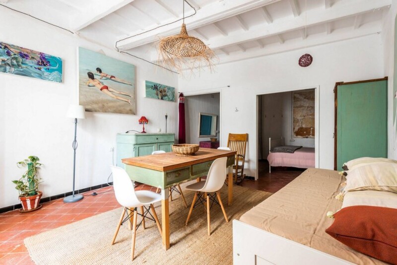 A unique townhouse in the historic center with a lot of charm located on a semi-pedestrian street in the very heart of the old town of Ciudadela. The house is located a few minutes walk from all the historical sites of the city and is full of character and originality. With several limestone walls (marés), and top-quality carpentry, it has been renovated and equipped to guarantee a level of comfort all year round. Its great style, a combination of white and stone colors and details such as mosaic tiles, as well as its attractive roof terrace, very private, right in front of the church of Sant Francesc and overlooking the charming terracotta roofs of the old city, makes this a unique piece that breathes history and elegance in all its senses. The house consists of three floors with a total constructed area of ??141 m², not including a large basement with a separate entrance from the street and the aforementioned roof terrace. It has four bedrooms, three bathrooms, a toilet, and several multipurpose rooms (living room-dining room). The ground floor has direct access from the street, where a large hall is the prelude to a cozy living room with an original beamed ceiling and terrazzo floor, with access to a kitchen and bathroom. The first floor, with hydraulic tiles, offers a bedroom and a second bathroom, attached to a completely renovated living room, respecting the old character of the property, with its large and bright window, which overlooks the main facade of the house and leading to a fully fitted modern kitchen and breakfast area. The staircase continues to the second floor, where we find a large bedroom and a smaller one, a kitchen, and a comfortable bathroom, which allows independent uses or the possibility of setting up a small apartment for tourist use. Without a doubt, it's one of those unique pieces that come onto the market very occasionally, which offers us a wide range of possibilities, both commercial and as a splendid family home.