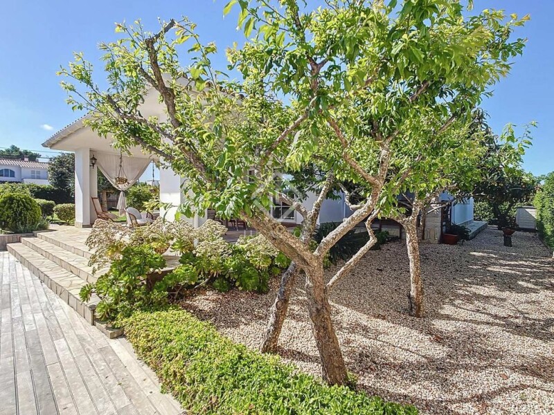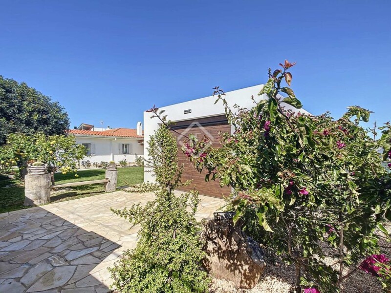 Lucas Fox presents this charming villa completely renovated in 2019 with a surface area of 235 m² built on a 1,000 m² plot in the prestigious residential development of Sa Caleta, in the municipality of Ciutadella de Menorca. The property is all distributed on a ground floor, but has a lower ground floor with a double bedroom with good ventilation and a private bathroom with access from the exterior. At the entrance, we are greeted by a small entrance hall that gives access to the large entrance hall- hall with built-in wardrobes. From here, it leads us to the main bedroom with a large dressing room and private bathroom, to another double bedroom with built-in wardrobes, both with access to the garden, and to a full bathroom . Returning to the entrance, we access a beautiful modern kitchen fully equipped with an island and open to the dining room with large windows that allow natural light to enter the entire room. The windows access onto a wooden porch with exposed beams, ideal for lunch and dinner almost all year round. It also has a utility room with access to the exterior. From here, and also from the entrance hall, we go to the comfortable living room with a pellet fireplace that heats the entire house. In addition, it has access to the spacious covered porch, ideal for spending evenings with family and/or friends. Exterior, we find a well-kept garden, with native plants and fruit trees, a built-in barbecue area, a toilet, a salt chlorination pool, a rainwater collection well and a garage. The house was renovated in 2019 with great care and with high quality materials. It has exterior carpentry with double glazing, exposed wooden beams in the entrance and kitchen porches, hot-cold air conditioning splits and drip irrigation. Without a doubt, an ideal house to live in all year round or spend time with family and/or friends. Contact us for more information or to arrange a visit.
