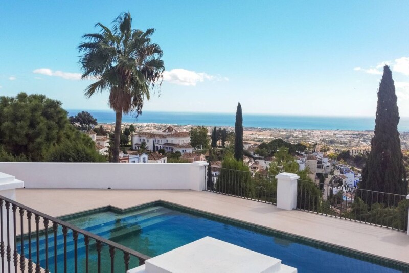 Exclusive villa with outstanding panoramic views in El Madroñal, Benahavis This exceptional villa is a true architectural gem, located in the prestigious hills of Benahavís. Designed to maximize natural light and breathtaking panoramic views, the property offers an elevated living experience with seamless indoor-outdoor integration. Set on a spacious plot, the villa boasts uninterrupted vistas of the Mediterranean Sea, Gibraltar, and the rolling Andalusian countryside. The residence features an elegant open-plan layout with high ceilings and floor-to-ceiling windows, allowing for an abundance of natural light. The stylish living and dining areas blend effortlessly with a designer kitchen fitted with top-of-the-line appliances. Each of the spacious bedrooms is designed for comfort and privacy, with en-suite bathrooms and private terraces that overlook the stunning surroundings. The master suite is a true retreat, featuring a luxurious en-suite bathroom, walk-in wardrobe, and a private terrace with breathtaking views. Stepping outside, the villa offers beautifully landscaped gardens, an infinity pool, and multiple terraces for outdoor entertaining. A fully equipped gym, spa area, and cinema room add to the villa’s luxurious appeal. Located within a short drive of world-class golf courses, fine dining, and the vibrant lifestyle of Marbella and Puerto Banús, this villa represents the perfect blend of tranquility, exclusivity, and modern luxury in one of the Costa del Sol’s most sought-after locations.