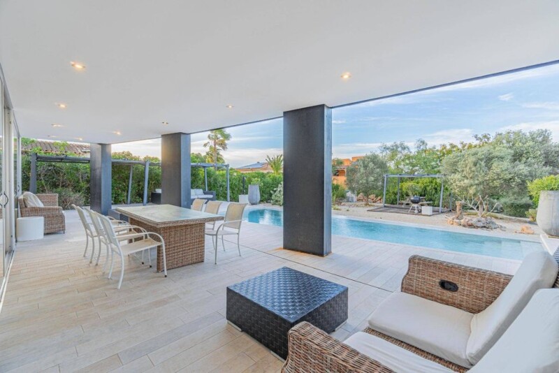 Villa with vacation license, located in the prestigious Sa Torre. Enjoy the exterior charm with an endless pool and a chill out area to spend your summer days. Its interior design, perfectly distributed over two floors, offers a modern kitchen, a spacious living room with an office, a guest room and a bathroom on the lower floor. On the first floor, you will find the bedrooms, two of which have access to a private terrace with panoramic views of the pool and the sea. This chalet also has an elevator for greater comfort and an underground parking lot to park your cars easily.