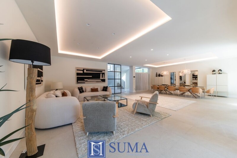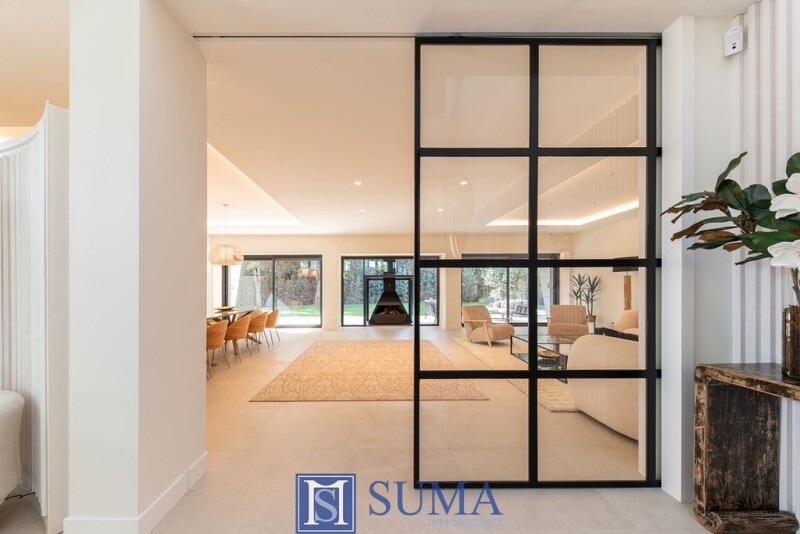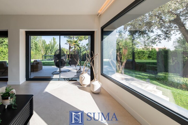 Suma Moraleja offers a spectacular independent villa of NEW CONSTRUCTION with a spectacular design and great quality, which is located on a plot of more than 2500 m2, in one of the best areas of Moraleja. THE WORKS ARE ALREADY STARTED, AND WILL BE COMPLETED AT THE END OF 2022. We highlight its avant-garde design with the greatest technological innovation and with the aim of achieving the greatest well-being and comfort with the use of efficient, intelligent, sustainable and safe energies, in addition to the best materials on the market. All this is what defines this spectacular independent villa of more than 930 m2. The villa is distributed over two floors plus the basement, which are a display of modernity, elegance and quality thanks to the materials used. On the main floor are the common areas that are presided over by a beautiful and very spacious 72 m2 living room, it also has a second living room or living room of 47.50 m2 and a fantastic kitchen with a central island connected to the dining room of 11 m2, the dimensions of these rooms allow you to celebrate large celebrations with friends and family. Also on this floor we find a charming interior patio with its glass ceilings, hall and office that make this space one of the most special in the house. To find the main bedrooms we have to go up to the private area that is on the first floor, and we can do it using its beautiful stairs or the installed elevator that connects the three floors. Four spacious rooms are located here, all of them with en-suite bathrooms. The main bedroom is a master suite, a whim for demanding people, with two bathrooms and two dressing rooms with access to a large terrace. In the basement there is a 21 m2 living room or games room, a wonderful guest bedroom with an en-suite bathroom, a gym, a wine cellar and a toilet. Also a service area with bedroom, bathroom and laundry room. The garage has capacity for 4 cars inside. Its quarter-hectare garden is a true paradise of unquestionable beauty, which provides the ideal setting and where the private pool is housed. You will have maximum comfort and energy efficiency thanks to its air conditioning through geothermal energy with radiant and refreshing floors. (Infographics are published).