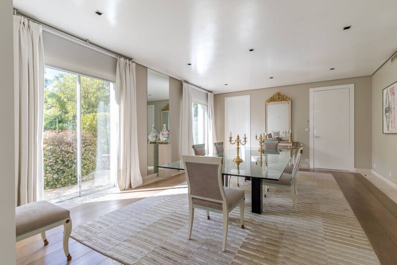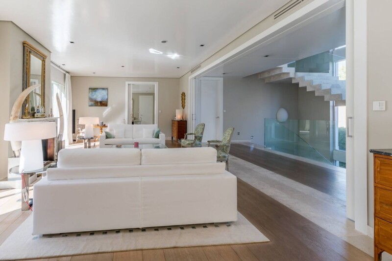 In this residence, spaces are filled with light and every detail has been carefully considered for your enjoyment. Details such as the cantilevered staircase, the painting of walls and ceilings, the large floor-to-ceiling windows, the access to the garden or terraces, the floors matching stone and noble woods, the interior and exterior carpentry, the natural and artificial lighting, and the high quality materials used make up a very exclusive home. Carefully chosen materials: noble wood floors throughout the house, high-quality appliances (Gaggenau), home automation, security... On the ground floor, you can appreciate the unique ceiling height and spectacular dimensions that have allowed for the unique layout of this property. Here we find the guest suite with direct access to the garden, and the security booth. The main living room, with a marble fireplace, is located on the first floor. It has access to one of the terraces of the house and is connected to the dining room by a sliding door. Here we also find a library room and the kitchen. The master bedroom occupies the entire second floor of the property, with a spacious living room, offices, two terraces, two dressing rooms, and two bathrooms. On the top floor, there are four en-suite bedrooms, each with its own living room. All floors have an elevator. The basement has a gym, a climate-controlled cellar, a gun safe, a storage room, and a garage with capacity for nine vehicles, with a car elevator. A large soundproof multipurpose room, fully equipped to host parties with a large number of guests, as well as a laundry room and service room. The well-being is completed with underfloor heating and cooling, as well as three cozy fireplaces. The exquisitely maintained garden completely surrounds the property and enjoys different leisure areas, as well as a unique heated pool.
