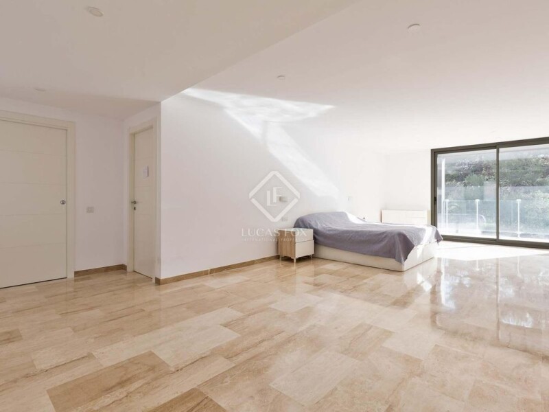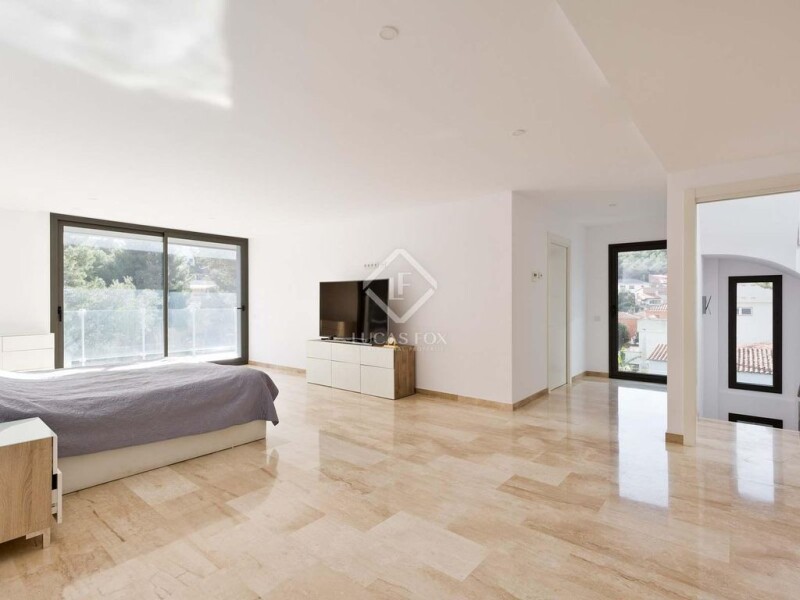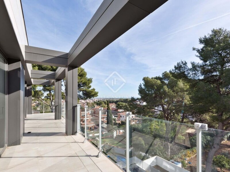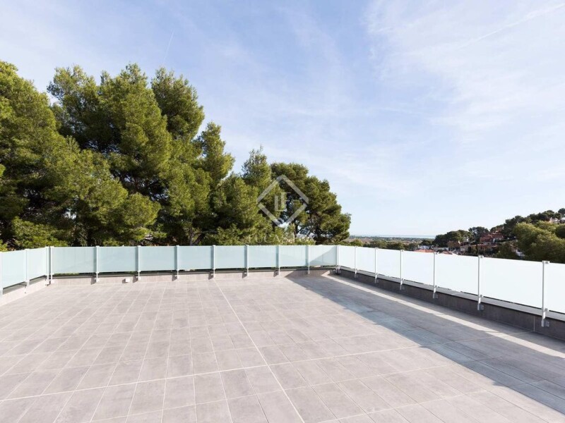 This magnificent newly finished house of 510 m² is located in one of the best spots in the area, perfectly connected with the surroundings and near the centre of various towns in the Garraf region. The house is distributed over 3 floors. When entering from the street, the house has a space to leave up to 3 vehicles, exterior access to the garden and the lift that allows you to descend to the garage to park the vehicles on the lower floor. Crossing the threshold on the ground floor, we find a hall that gives access to a bedroom with a private bathroom, another 3 large bedrooms and a complete bathroom that serves these rooms, with the stairs on the right that lead to the rest of floors. On the first floor we have the master bedroom with a large private bathroom with a separate bathtub and shower, and a large studio (which could be used as an office, library, gym, among others). Both rooms benefit from access to a large terrace with views that occupies the entire length of the building. The attic floor consists of a large 120 m² solarium with panoramic views, where you can enjoy your privacy or enjoy gatherings with friends. On the lower floor we have a large living room with a terrace, dining room and open kitchen. These spaces are presented to be finished, which allows the buyer to choose the qualities, layout and design that they prefer. From here, we access the garden, pool, barbecue and chill out area. On this same floor is the guest bedroom with a private bathroom, and the laundry and ironing area that connects with the storage room and the garage. Please contact us for more information.