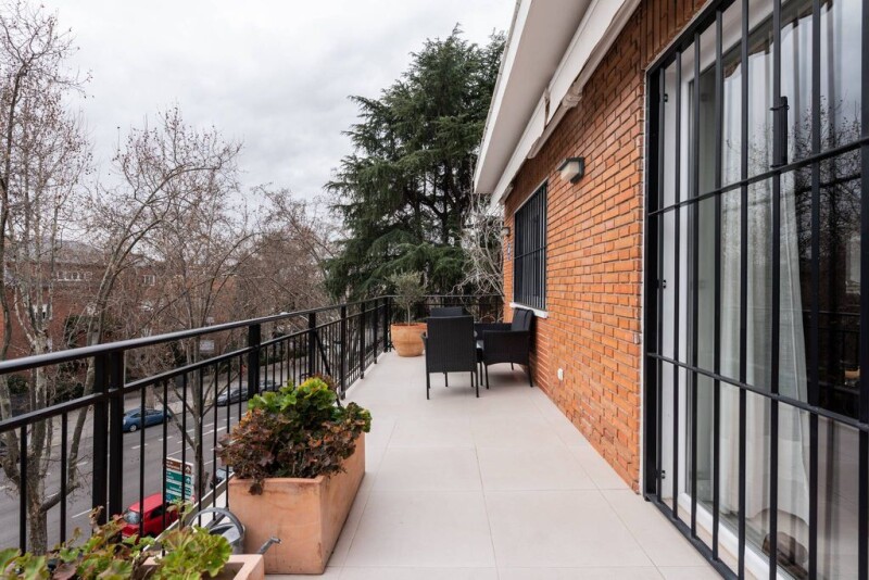 This spectacular triplex, located in one of the most exclusive areas of the capital, El Viso, consists of a duplex penthouse of 252 square meters and a second floor with two apartments of 80 square meters each. Recently renovated, it offers two large terraces, three covered parking spaces and one uncovered. The main floor has a spacious hall with guest toilet and access to a large terrace. Between the kitchen and the hall is the dining room. The kitchen is fully equipped with top quality materials and has plenty of storage space and pantry. It also has an adjoining room with a service bathroom. In the attic, facing southeast, is the master bedroom with sitting area, large closets and a bathroom with natural light. The lower floor is divided into two independent apartments, each with large windows in the living area, fully equipped kitchenette and separate bedroom with large closets and en suite bathroom. The heating is central and there is air conditioning in all rooms. In addition, the house has two large storage rooms.