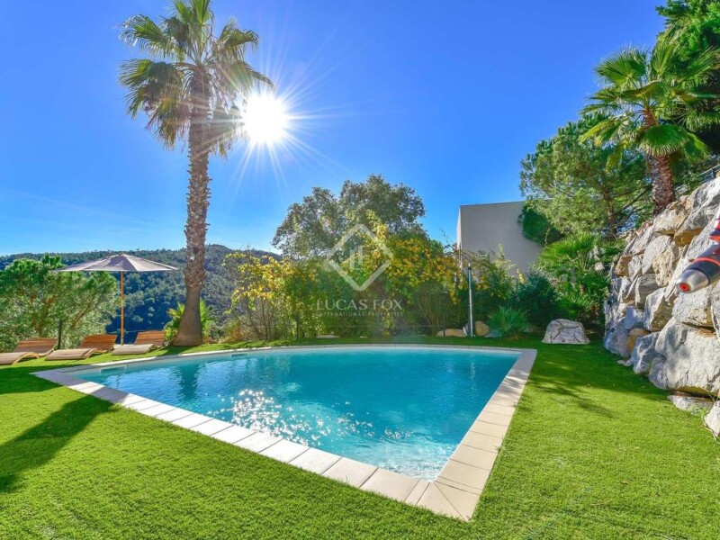This beautiful modern style villa for sale is located in a residential area of Sant Feliu de Guíxols, Casa Nova. The property, built in 2005 and renovated in 2023, has a constructed area of 326 m² on a plot of 1,156 m² and is distributed over three floors. In addition, it benefits from a southeast orientation, so it enjoys natural light throughout the day. On the upper floor , we find the night area with the double main bedroom that has large windows that make it very bright, as well as a fireplace, a dressing room with LED lighting and a large terrace with impressive views of the sea and the mountains. On the main floor , we have another night area with two double bedrooms with private bathrooms and sea views, as well as two other double bedrooms and a full bathroom . We go down to the lower floor , where the day area is located with a large living-dining room with fireplace, a guest bathroom and a spacious open kitchen fully equipped with Bosch brand appliances . The modern-style kitchen features wooden elements and is equipped with induction hobs, dishwasher, oven, microwave, integrated refrigerator and freezer. The kitchen has its own storage room and laundry room. From the day area, we have access to the exterior area with a large artificial grass garden , a covered wooden terrace and a recently renovated tile pool. The exterior area also has parking for four cars easily. The entire house is equipped with hot/cold air conditioning through ducts and the night areas have electric shutters. Each floor can be accessed by stairs or a lift. Finally, it should be noted that the villa is located in a residential area that has a communal area, with a swimming pool and tennis court. Without a doubt, it is a magnificent villa in a unique environment, perfect for enjoying the Costa Brava. Contact us to schedule a visit or request more information.