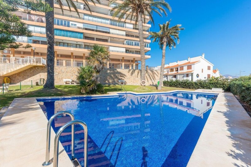 This unique 3-bedroom apartment is located on the front line of the spectacular Muchavista Beach, just 20 minutes from Alicante city and 5 minutes from the center of El Campello. its privileged location offers easy access to the tram and bus stops, as well as being close to all amenities, schools, and highway connections. Access to the apartment is through a residential street leading to an automated gate, which opens to the beachfront complex. The property is situated on a floor accessible via an elevator. This exceptional apartment features 3 bedrooms and 2 bathrooms with showers, one of them en suite within the master bedroom. The square-shaped living-dining room opens onto a covered terrace with stunning sea views. Both the living-dining area and the terrace offer breathtaking panoramic views of the Mediterranean. The kitchen, fully equipped with appliances, seamlessly integrates with the living-dining area, allowing for spectacular sea views while cooking or enjoying family time. The master bedroom also has direct access to the terrace and offers magnificent sea views through its large windows. The residential complex includes a communal parking area and features an idyllic beachfront swimming pool surrounded by landscaped gardens. in addition to the communal parking area, there is an option to purchase a private underground garage for an additional price to be agreed upon. it is highly recommended to schedule a visit in advance to avoid missing out on this unique opportunity.