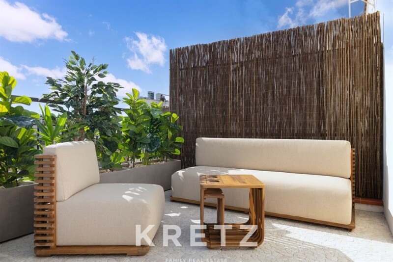 Eixample Dreta, Barcelona, a few steps from the former Ritz Hotel. 133 m² duplex penthouse designed by Nobohome with 2 outdoor areas in a modernist building from 1900 with 2 original lifts. The top floor comprises a bright living-dining room with a fully equipped open-plan kitchen. A large 22 m² south-facing terrace, ideal for al fresco dining and city views. The lower floor comprises a master suite with dressing room and bathroom, and 2 bedrooms sharing a bathroom. Each bedroom has direct access to an 18 m² terrace. In one of Barcelona's most sought-after districts, this penthouse is surrounded by emblematic architecture, prestigious restaurants and public transport.