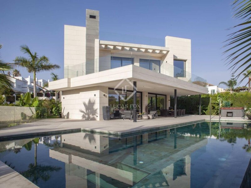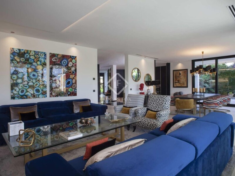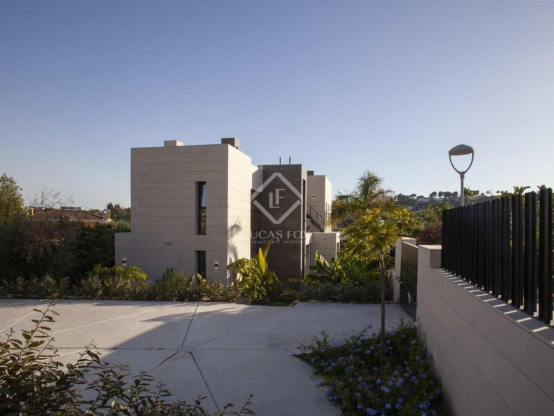 Fantastic contemporary villa with mountain views in Parcelas del Golf, a private and secure residential area in the Golf Valley of Nueva Andalucía. Arranged over 3 levels, this luxury villa offers spacious interior spaces bathed in natural light extended by huge terraces leading to a large swimming pool and superb Mediterranean gardens, an ultramodern kitchen fully equipped with high-end Balay appliances, 7 bedrooms, 6 bathrooms, one of the bedrooms with two windows overlooking the lower level with a view of the cars. There is a lift to all levels, a 200 sqm solarium, barbecue area, jacuzzi, rare stone construction from Portugal and outdoor parking for 5 cars. A sublime property in an exceptional setting only 5 minutes’ drive to Puerto Banús, the beach and all amenities.