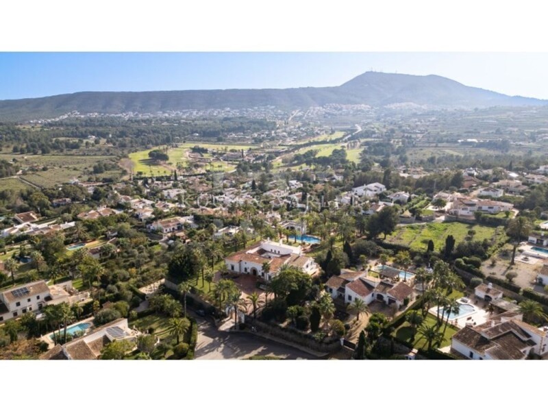 Immerse yourself in Mediterranean elegance with this stunning villa located in the heart of La Lluca, one of the most exclusive urbanisations in Javea. Built in 1985, this unique property is spread over an exceptional plot of 5,835 m², which guarantees total privacy and a charming setting surrounded by lush greenery and majestic palm trees. From the entrance, an imposing double gate opens onto a spacious courtyard paved with cobblestones, where the villa is presented in all its splendour. With its gleaming white walls, Tosca stone arches, and traditional tile roof, this home embodies the classic Spanish architectural style. A solid wood door, located under a Tosca arch, invites you to discover an interior full of timeless charm. Inside, the main villa offers more than 1,000 m² of living space, enriched with unique architectural details: wood-beamed ceilings, Tosca arches framing the rooms and windows, solid wood doors, and a magnificent wood-burning fireplace that dominates the main space of the house. The property is equipped with all the elements for absolute comfort, including underfloor heating, air conditioning by split hot/cold units in the main house, and ducted air conditioning in the guest house. The villa includes: 13 spacious bedrooms, perfect for entertaining family and friends. A wine cellar located in a real basement. A double garage. The property is not limited to the main house. A separate guest house of over 100 m², currently used as a guest lounge and gym, offers a versatile space ready to suit your needs. In addition, an annex near the pool, currently used as a storage room, could be converted into a spectacular summer kitchen. Outside, the spectacular nayas, typical of the region, provide the perfect place to relax while overlooking the meticulously manicured garden and 16 x 7 metre swimming pool. Surrounded by 150 palm trees and lush Mediterranean vegetation, this property offers an atmosphere of absolute serenity. The garden is also equipped with an automatic irrigation system, fed by a 160-meter private well, and has outdoor lighting that enhances the beauty of the landscape. Located just 2 minutes from the Golf de Javea and 7 minutes from the Arenal Beach, this villa enjoys a privileged location. Javea, with its authentic atmosphere, charming old town and secret coves, is an ideal destination for those looking for an exclusive lifestyle. Combining tradition, modernity and comfort, this unique villa is much more than a residence: it is a true Mediterranean oasis designed to offer an exceptional and inspiring lifestyle.