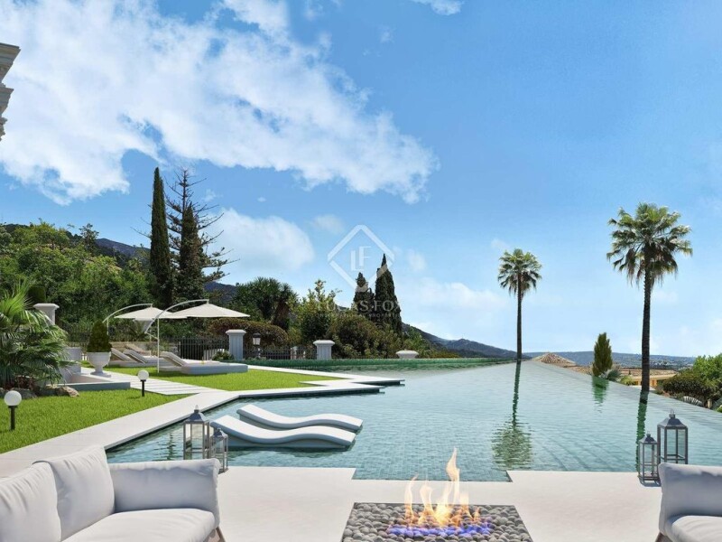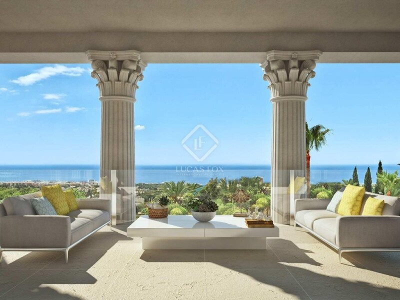 A single house, located in one of the exclusive residential areas of Marbella, where nature, peace, and security live together in perfect harmony. Its magnificent architecture of Greco-Roman inspiration with more than 1.200 m2 built, it is mounted on a plot of an excellent location in a corner with unique views of the Mediterranean Sea. An exotic garden and a swimming pool with large dimensions will turn your stay into an earthly paradise. This stunning newly built villa in Sierra Blanca is one of the most special properties coming into the market. Expected to be 100% completed by the end of 2022. Built with the best quality material it will offer all the features you should expect from a property of this price and in this location. Materials used are Stone and marble which maintain the property fresh in the summer and warm in winter. The main floor has a triple-height hall that leads to a covered patio that gives access to the living area and kitchen. 2 ensuite bedrooms are located on this level with access to the garden and pool area. The infinity pool is 40 meters long with a pool bar area on the side where you can enjoy stunning sea views. A presidential staircase takes you to the upper level, where you might find three bedrooms including the master, all with en suite bathrooms. Views from this level are even more spectacular. On the lower level, there is a spa with an indoor swimming pool, Hamman, and sauna. Also a bodega and a bar with a game room for the entertainment of the owners and guests. There is a laundry area, an independent apartment, and a spacious garage for three cars. All the house levels are connected through a lift, including the solarium area, where is located a bar, open cinema and chill out with panoramic open views to Marbella, Puerto Banús, Gibraltar, Africa and the Mediterranean Sea. All this property has been built with the best quality materials, latest technology, domotics and taking attention to every single aspect that the most demand should be requesting.