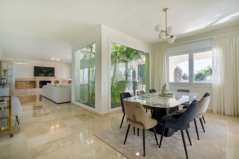 Comfortable villa for short-term rent in Nagüeles, Marbella Golden Mile This stunning luxury villa is located in the prestigious area of Nagüeles, in the sought-after Marbella Golden Mile, just a short drive from the vibrant city of Marbella, in Malaga. With its prime location, this property offers the perfect mix of privacy and convenience, allowing residents to enjoy the tranquility of a peaceful neighborhood while being close to all amenities and attractions. Spread over a generous built area of 750m², this elegant villa boasts 5 spacious bedrooms and 6 bathrooms, providing ample space for a large family or guests. The interior is beautifully designed, with high-quality finishes throughout, creating a luxurious and comfortable living environment. This villa is the epitome of luxury living, with a range of impressive features that will leave you in awe. The property includes a private pool and garden, perfect for relaxing and enjoying the sunny climate of the Costa del Sol. The pool area offers breathtaking mountain views, creating a serene and picturesque atmosphere. Inside the villa, you will find a dining room and a living room, ideal for hosting gatherings and entertaining guests. The modern kitchen is fully equipped with top-of-the-line appliances and features a barbecue area, perfect for enjoying al fresco meals. Additional features of this exceptional property include air conditioning, a fireplace, an alarm system, fitted wardrobes, and glass doors. The villa also boasts multiple terraces, both covered and uncovered, allowing you to soak up the sun or seek shade as desired. In summary, this luxury villa in Nagüeles, Marbella Golden Mile offers the ultimate in comfort, style, and convenience. Whether you are looking for a permanent residence or a holiday home, this property ticks all the boxes and is sure to impress even the most discerning buyer. Don't miss out on this incredible opportunity to own a piece of paradise on the Costa del Sol.