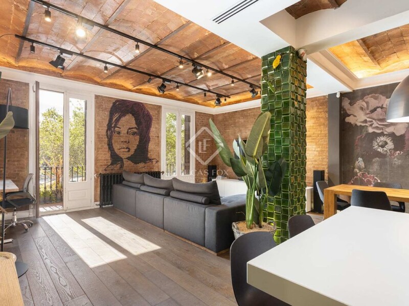 Few apartments in Barcelona boast as much character as this. The bare brick walls and high Catalan-vault ceilings are a reminder that we are in a building that dates back to the 1800s. The living room boasts a comfortable sofa and stunning solid wood dining table, while its walls feature some truly original décor: a mural, the flowers on the wall and the bright green tiles that contrast with the kitchen’s white modern, minimalism. Its island will delight the chefs among you. Stepping out on to the elongated balcony, we can enjoy majestic views of the Pla de Palau, the market square of medieval Barcelona and a gateway for everything that arrived in the city from the sea. Follow the hallway, and you come to the stylish bathroom and its spacious shower. Next up is the single bedroom with its charming decorative touches and a small desk. Finally, there is the large double room with its king-size bed and TV. Please contact us for further information.