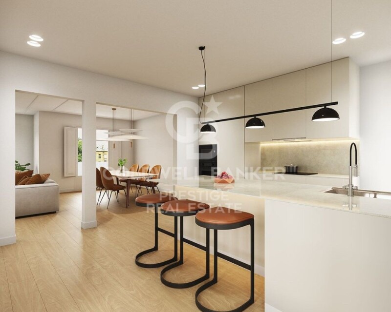 For sale, a 136m2 apartment in Putxet, with a renovation project for 3 bedrooms and 4 bathrooms, located in a neoclassical building from the 1940s. The property will be delivered fully renovated, brand new, with high-quality finishes, following the style of the attached renders. The renovation will be completed within a maximum period of 5 months. This is a through apartment located on the second real floor of a building with an elevator. It is oriented on one side to a quiet courtyard and on the other side to Padua Street. The proposed layout can be seen on the floor plan, with a spacious living area featuring a dining room and kitchen in an open-plan arrangement, as well as three suites with bathrooms. The final layout can be adjusted according to the client's needs. Discover the Putxet neighborhood, a tranquil environment surrounded by nature, with its tree-lined streets and relaxed atmosphere. It is ideal for those seeking peace and comfort without being far from services and urban life. Well-connected, this residential area offers the serenity you need for your daily life, just minutes from the city center. Feel free to contact us for more information or to schedule a visit.