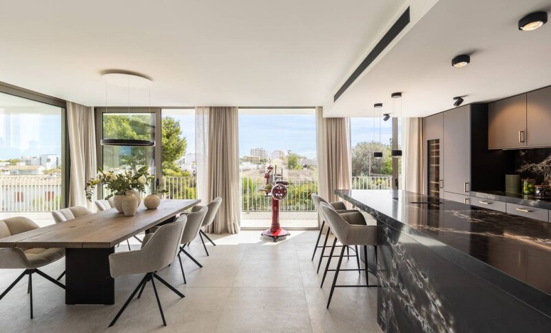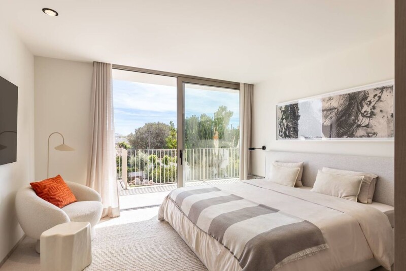 Mediterranean style villa just a few minutes walk from Palmanova beach, one of the most beautiful in Southwest Mallorca, close to golf courses, beaches, and the city of Palma. It stands out for its modern and elegant design and high quality. On the main floor there is a guest toilet, the master bedroom with ensuite bathroom, an open kitchen from the prestigious brand Birgit Müller with Miele appliances, dining area, and living room, with access to the terrace and partial sea views. On the lower floor there are three other bedrooms, each with ensuite bathroom; there is a multipurpose room that can be used as a gym or cinema room, underground parking, and laundry room. In the renovation, noble materials such as natural stone and oak wood have been used, bringing warmth and character to the rooms, as well as the living room fireplace. Highlights include ducted air conditioning, underfloor heating, aluminum windows, home automation system, and water softener. All lighting is from Occhio. Highlight the Mediterranean garden with lawn, fruit trees, and vegetation, as well as its approximately 30m2 pool. A perfect villa for those who like to enjoy with family and friends in an exclusive environment.