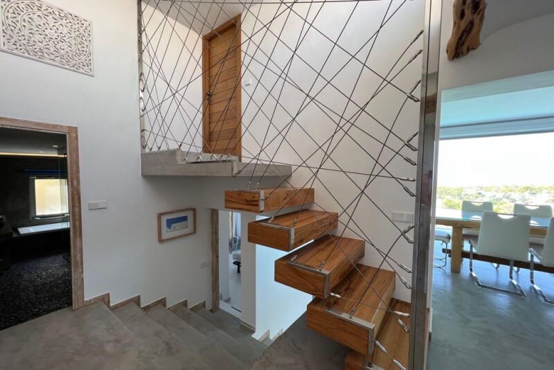 Occupying an impressive rural plot of 1,333m2, just five minutes from the exclusive bay and beach of Cala Salada, on Ibiza’s glorious western ‘sunset coast’, this recently renovated country villa boasts breathtaking Sea and Sunset views and offers a wealth of facilities for the great island escape. The recently renovated property provides four bedrooms all with fitted wardrobes, two of which have en-suite facilities. There is a further family bathroom, as well as a bespoke kitchen fitted with high-spec, Siemens appliances, a breakfast bar, a separate dining area and a large open-plan living space featuring an elegant integral staircase to the first floor. The fully air conditioned/hot air heating and double-glazed family home has been tastefully restored using quality contemporary design features for comfort, whilst retaining some beautiful, traditional elements of island architecture such as wooden beamed ceilings and the extensive use of natural materials. The interior is illuminated by huge windows which also serve to bring in the magnificent scenery of its surroundings. The property also benefits from high speed fibre optic internet/WiFi, an alarm system and full Sonos sound system both inside and outside the villa. The external areas of this gated, private dwelling are simply stunning, boasting an infinity pool and decked solarium as well as numerous, multi-level shaded terraces, chill-out zones and an external kitchen and BBQ area. Perfect for enjoying alfresco meals against the backdrop of the colourful, year-round sunsets. The western-orientated villa provides ample parking and is surrounded by lovely, local stone walls and is crowned by a capacious roof terrace affording panoramic 360-degree views over the sublimely picturesque area of Cala Salada, the sea, coastline and pine forests. Situated in the heart of the much sought-after area and close to all the amenities and attractions that Ibiza has to offer, this exquisite, luxury modern villa also offers the character and charm of a typical island finca. Play Video All property details appearing in the content of this website including dimensions, facilities and amenities are as supplied to everything Ibiza Properties by the property owner and accepted as accurate at the time of posting. The company cannot be held responsible for any discrepancies and information is subject to change or update at any time. PROPERTY AMENITIES Water Mains Electricity Mains Air Conditioning Hot Air Heating Private Plot Fitted Kitchen Modern Kitchen Open Plan Kitchen Beach Nearby Near Schools Sea View Sunset View Country View Garden Internet WiFi Telephone Alarm Security System Parking Pool Decking Chill Out Area Fitted Wardrobes BBQ Outside Kitchen Outside Dining Utility Room Storage Restaurants Nearby Local Amenities Nearby Infinity Design Pool Recently Renovated Original Beams Abundant Natural Light Stunning Sea & Sunset Views Ample Parking Outside Shower & WC Double Glazed Windows Modern Bathrooms Multiple Terraces & Patios West Facing Orientation Quality Fixtures & Fittings Hi Tech Appliances Sonos Sound System Fibre Optic Internet Electric Gated Entrance Nearest Beach 5 mins Away Outdoor Jacuzzi Pool.