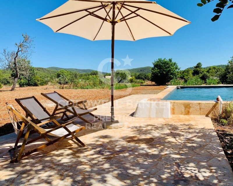 Let yourself be seduced by 'Es Ginebras,' a unique property located in the prestigious area of Santa Gertrudis. This estate is a true tribute to the most authentic Ibiza, a sanctuary of calm and natural beauty where time seems to stand still. Set on a 10,000 m² flat plot of land, it features a main house of 225 m², accompanied by a charming guest house and a cozy porch with a barbecue, masterfully combining contemporary comfort with traditional rustic charm. From the very first moment, 'Es Ginebras' conveys a sense of harmony and exclusivity. Its architecture blends naturally with the surroundings, offering a home where every corner has been designed for rest and well-being. With four bedrooms and four bathrooms, spacious areas, and a privileged connection with nature, this estate allows you to enjoy tranquility without giving up proximity to the island's most iconic locations. Nestled in the serene valley of Es Gelabert, the property invites you to stroll among olive trees, almond trees, and fig trees, admire the spectacular views from the cliffs, and watch unforgettable sunsets. Its own well nourishes a lush vegetable garden and fruit trees, while the nearby forests, located at the perfect distance, provide privacy and security against potential fires. Just minutes from Santa Gertrudis, the epicenter of the island's artistic and cultural life, the estate offers the perfect balance between countryside tranquility and a refined lifestyle. Exclusive boutiques, charming cafes, and a vibrant cultural atmosphere make this location a privileged spot for those seeking the best of Ibiza. Make 'Es Ginebras' your personal sanctuary in one of the island's most coveted areas. More than a property, this estate represents a lifestyle experience, where authenticity and modernity coexist in perfect harmony.