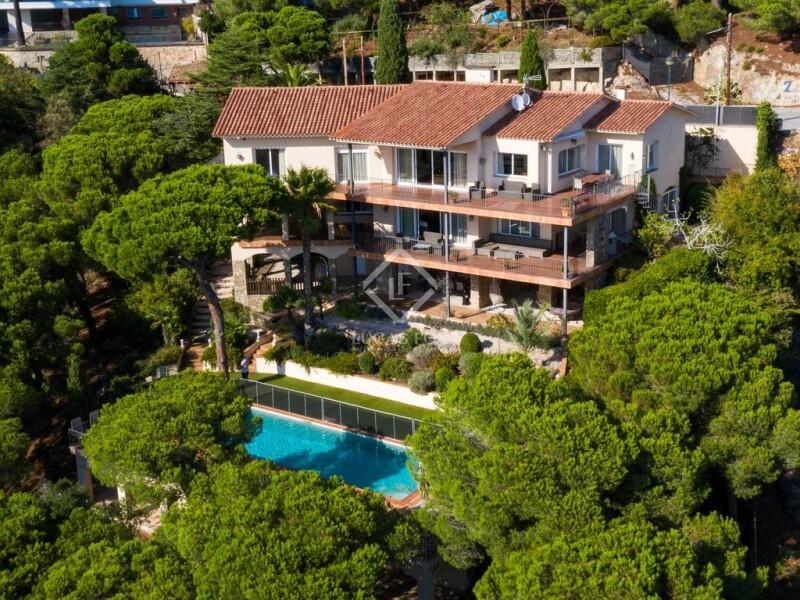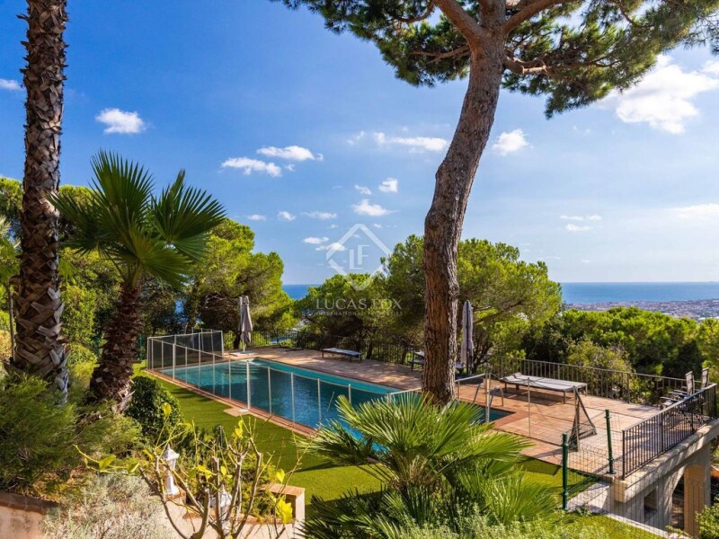 This impressive house, almost 700 m² in area, is located high on a hillside in Cabrils, within the exclusive Montcabrer development . Its southwest orientation affords panoramic views of the sea and Barcelona, while providing abundant natural light throughout. The property, built in 1970, stands out for its solidity and spaciousness and is distributed over three floors with open spaces and terraces totaling more than 250 m². Upon entering the property, we find a spacious central landing that leads to five double bedrooms, two bathrooms, and the main living-dining room with a wood-burning fireplace. From here, we access the kitchen and utility area. On the middle floor, we find the main bedroom with its own living room with a fireplace, a dressing room, a bathroom with a Jacuzzi, and an indoor/ exterior gym. This floor also houses the laundry room and garage. The lower floor is designed for leisure and entertaining. It features a 170 m² covered terrace with an exterior dining room , barbecue area, and a second kitchen, ideal for gatherings with friends and family. From here, steps lead down to the 60 m² pool, surrounded by terraces and artificial turf. The 2,500 m² plot includes a natural forest area that offers privacy and an unbeatable setting. The property enjoys excellent connections: Barcelona is just a 25-minute car away, Vilassar de Mar beach is 10 minutes away, and there is an international school nearby, making it a perfect choice for both a first or second home. Due to its location, features, and exclusivity, this house also represents an excellent investment opportunity.