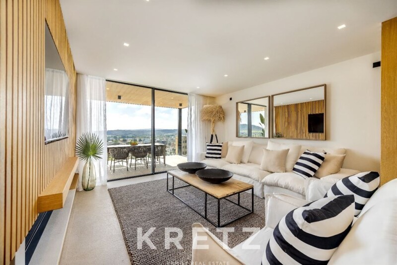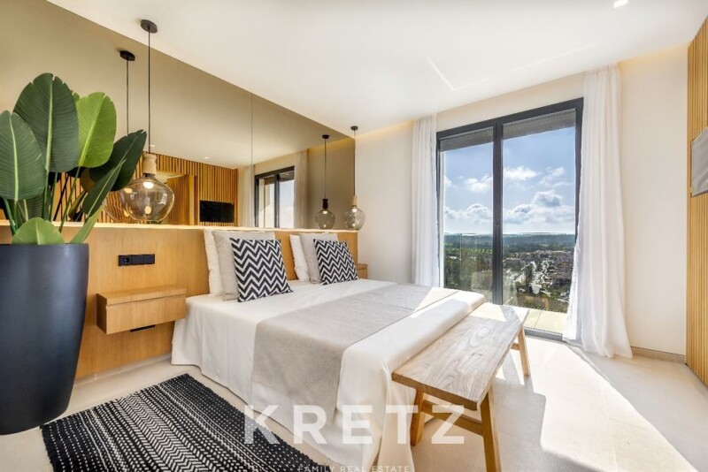 Santa Ponça, Mallorca, 20 minutes from Palma and 35 minutes from the airport, in a new luxury residential complex with contemporary design and sea views. 155m² apartment. Living-dining room, fully equipped modern kitchen with central island and wine cellar. 2 master suites with bathrooms, 2 double bedrooms. Home automation and noble materials (marble floors, oak or walnut wood, natural stone) throughout the property. Private terrace accessible from the living rooml. Common infinity pool with solarium terrace. Landscaped gardens with automatic irrigation. Underground parking and padel court. This property is located near beaches, Port Adriano designed by Philippe Starck, golf courses and numerous restaurants.