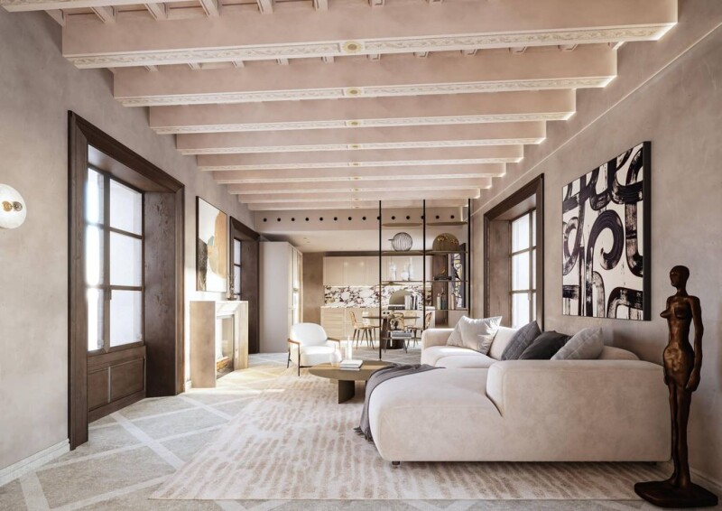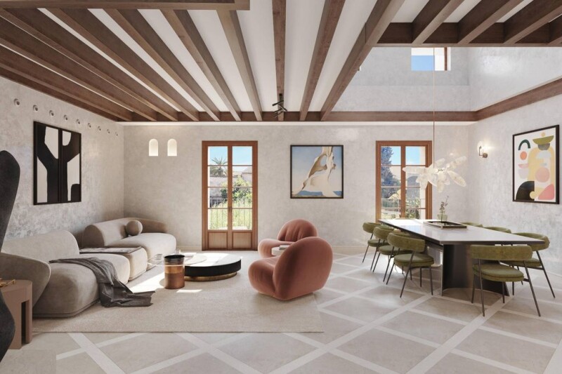 Discover the essence of luxury and urban sophistication in this exclusive residential penthouse, located in one of the most desired neighborhoods of Palma de Mallorca. This extraordinary property, currently in development and scheduled for completion in 2025, offers impeccable design and high-quality finishes that merge with the Spanish-Mediterranean architectural style, capturing the essence of modern life in a historic city. The penthouse, with 244 square meters built, stands out for its spacious layout that includes two bedrooms and two full bathrooms, as well as a guest toilet. Each bedroom has an en-suite bathroom, providing a private and serene retreat. The kitchen, designed for the delight of any chef, features designer finishes that perfectly complement the central gas and geothermal heating system, as well as central air conditioning, ensuring comfort all year round. One of the highlights of this property is its terrace, an ideal space to enjoy the stunning views of the city skyline and experience unforgettable moments outdoors. The entire property benefits from an abundance of natural light thanks to its large windows that offer exterior views. The penthouse also includes a private garage and elevator access, ensuring maximum convenience. The high beams in the ceilings add a touch of elegance and spaciousness that is hard to find in the current market. Located in an environment that offers a lifestyle of urban sophistication, this penthouse is within walking distance of a variety of essential services, including top-notch educational centers, renowned hospitals, as well as green areas and parks perfect for leisure and outdoor recreation. This penthouse promises to be not only a residence but a home filled with style, comfort, and luxury in the heart of Palma, thus offering a unique opportunity to own a piece of paradise in one of the city's most vibrant and coveted districts. Do not miss the opportunity to be part of this exclusive residential project that defines the next level of luxury living.