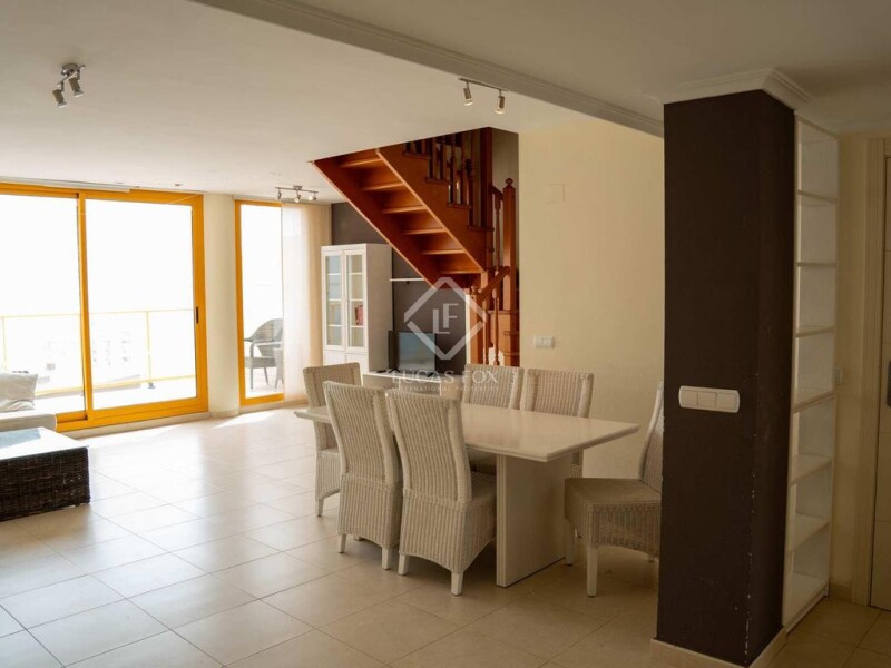 In the enchanting coastal town of Calpe, discover a truly unique spacious duplex penthouse of 278 m² offering unparalleled panoramic views of the mesmerizing Mediterranean Sea. This extraordinary residence, situated a mere 200 metres from the pristine Fossa Beach, is a haven of luxury, blending proximity, walking distance to local amenities like supermarkets and restaurants with a serene coastal lifestyle. As you approach the renowned building, known for its elegance and prestige, you will find yourself within easy reach of the vibrant array of shops and restaurants lining the charming streets. A delightful stroll along the seaside promenade reveals crystal-clear waters, a stretch of fine sandy beach, and an iconic view of the celebrated Peñon de Ifach – a natural rock formation that graces the horizon. Nestled within this esteemed building, residents have the option to access the services of the adjacent 4-star Hotel Spa and a Michelin-starred restaurant. The allure of this location is further complemented by the captivating outdoor amenities, including a lush garden and a refreshing pool, offering an idyllic retreat in the heart of the coastal paradise. The current layout of the penthouse allows for a flexible redesign, providing an opportunity to personalize and modernize this magnificent living space. Boasting full sea views and an abundance of natural light through expansive windows, this residence exemplifies a seamless blend of sophistication and comfort. The main entrance, located on the first level, opens into a spacious living room with direct access to a sea-facing terrace, creating a seamless indoor-outdoor flow. A separate kitchen, complete with its own terrace, enhances the culinary experience with an al fresco dining option. Three generously-sized bedrooms, accompanied by a full bathroom and a shower room, complete the layout on this level. Ascending the interior staircase to the upper floor, you will find an additional living area and kitchen. This level opens up to a direct access terrace and two pergolas, offering the perfect setting for private gatherings or simply enjoying the breathtaking views in style. To cater to your convenience, the penthouse comes with a garage, ensuring secure parking in this prime location. This is an exceptional opportunity to acquire a residence that not only promises a luxurious lifestyle but also invites you to embrace the beauty of Calpe's coastline in unparalleled comfort. In summary, this duplex penthouse stands as a testament to rare elegance, offering a unique blend of modern living, stunning sea vistas, and the convenience of a prime coastal location. Don't miss the chance to make this extraordinary property your own. Please contact Lucas Fox Altea on 00 965 208 331.