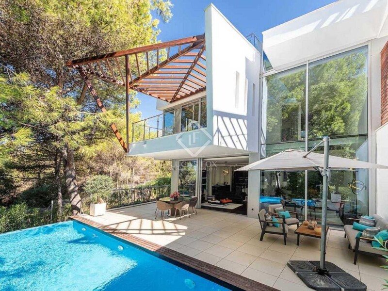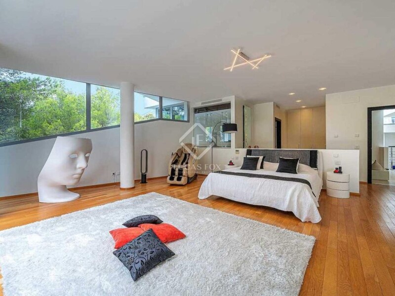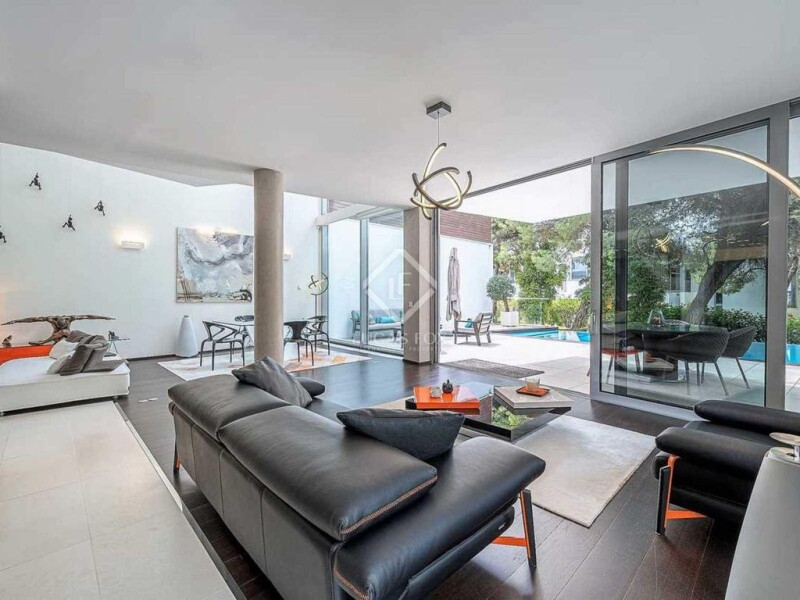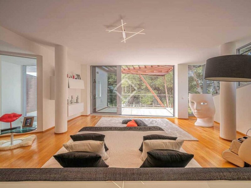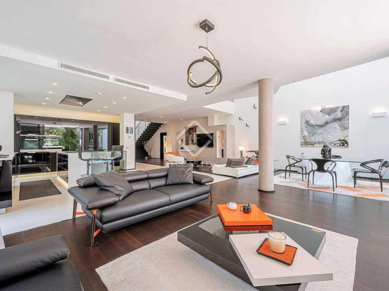 This semi-detached house is located in the famous Sierra Blanca development, in a luxury gated complex where we can enjoy all the amenities provided, such as two communal indoor swimming pools and a SPA. It has the special feature that every 8 houses share another SPA with a swimming pool and sauna. The house has a unique style, being the last of its group of 8, bordering the forest. Although the house does not have its own garden, it does have a beautiful infinity pool in front of the porch and the living room. The spaciousness and the height of the ceilings, make the living room a very large space to enjoy, giving it a personal style of decoration proposed by Roche Bobois. We have an open and modern kitchen equipped with the latest Miele appliances and we complete the ground floor with a bedroom with an en-suite bathroom and a small guest toilet, a library with access to the laundry room, a small sitting room, a TV and music room, a small storage room and the garage with space for two cars. Access to the upper floor is via a modern and comfortable staircase or the interior lift, where we are welcomed by an elegant office leading to the two large bedrooms on the upper floor, especially the master bedroom, with a luxurious en-suite bathroom. All the bedrooms in the house have access to a small outdoor terrace. And finally, on the third floor, there is a large solarium that occupies the entire surface of the house, with cosy terrace furniture that can be enjoyed on the pleasant summer nights of the Costa del Sol.