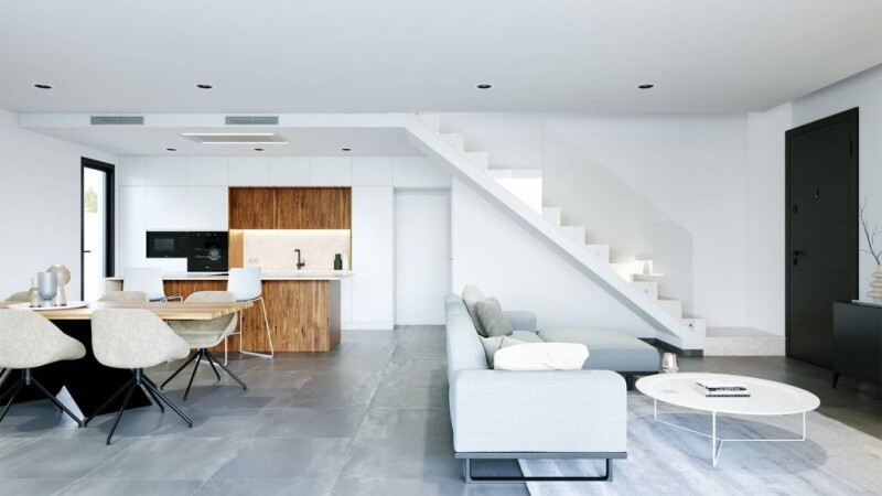 Experience modern luxury in this exquisite villa, perfectly situated in the charming residential area of Pinar de Campoverde on the Costa Blanca South. Just a 10-minute drive from the vibrant city of Pilar de la Horadada, and close to a variety of supermarkets, bars, and restaurants, this property offers the perfect combination of tranquility and convenience. This two-storey villa is set on a generous 650m² plot, featuring four spacious bedrooms and three contemporary bathrooms. The ground floor presents an expansive open-plan living space that seamlessly integrates the lounge, dining area, and kitchen, extending effortlessly to a large terrace through sliding glass doors. A double bedroom and a bathroom are also conveniently located on this level. Upstairs, you’ll find three additional bedrooms, including the master suite with an en-suite bathroom, plus another bathroom and a private terrace with breathtaking panoramic sea views. Designed with premium materials, the villa boasts a natural stone façade that exudes elegance and sophistication. The property is equipped with pre-installed ducted A/C, underfloor heating in all bathrooms, and high-quality white goods. Other luxurious features include fitted wardrobes, a separate laundry room, and indoor/outdoor LED lighting. The highlight of the outdoor area is the stunning infinity pool with a built-in Jacuzzi and an outdoor shower, offering the ultimate space for relaxation and entertainment. Pinar de Campoverde provides a serene environment surrounded by lush greenery and scenic landscapes. This desirable location is not only close to pristine beaches and world-class golf courses but also offers excellent connectivity to major cities and essential amenities, making it the perfect setting for both leisure and daily living. Ready to make your dream home a reality? Contact us today to schedule a private viewing or request more information about this spectacular villa in Pinar de Campoverde.