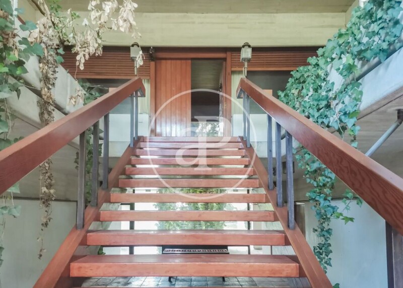 aProperties presents this iconic and characterful property, designed by the prestigious architects Dr. Javier de Mesones and Dr. Antonio Miró, both doctors of architecture. The brutalist-style home emulates the structure of a hórreo (granary) in homage to the owner's Cantabrian roots. For this reason, the house is ‘open to the air’, supported by two large pillars, which house different rooms. The house, with a very particular architecture and made with materials of great quality, nobility and timelessness, such as white concrete, Oregon red oak carpentry, has a size of 1,250 m². The large windows bring a lot of natural light into all the rooms, and the large terrace that surrounds the entire house. The main staircase leading to the house can be raised automatically, a feature inspired by the old fortresses that the architect has masterfully integrated into the design of the house. The house has a mirrored layout, with a central entrance giving access to two practically symmetrical wings. The house has three floors plus a basement. On the main floor, through a large entrance hall, the right wing houses a spacious living room-study, a guest toilet and four bedrooms with two shared bathrooms. In the left wing are the kitchen, a utility room with laundry area and a second living room with fireplace. On the first floor, there is the master bedroom, which occupies a large part of the surface area, equipped with an impressive dressing room and a bathroom with dressing table, all in a seventies style. The ground floor is structured in pillars, emulating the shape of a granary. On the first pillar there is a large gym area with sauna and bathrooms, while the second pillar includes a garage for two vehicles, a tool room and a pantry. From here there is access to the basement, which has a wine cellar equipped with a kitchen, a cosy sitting area with fireplace, a guest toilet and a large wine cellar for wine storage. Nestled in a quiet street of the urbanisation, the flat plot of more than 4,000 m² enjoys great privacy. The garden stands out for its lushness and cosy corners. Above it stands a Cantabrian granary, more than three hundred years old. Integrated in the garden, we discover a 60 m² flat that enjoys total independence, ideal as a service space or guest area. In the garden there is also a swimming pool, barbecue area and vegetable garden. In short, a unique house, one of the most iconic in the urbanization, with tremendous potential and excellent qualities and design. Fuente del Fresno is a pleasant and familiar urbanization, located at Km. 23 of the A1 motorway. It has private security 24 hours a day. It is communicated with Madrid by bus with regular departures from Plaza Castilla and metro network (Hosp. Infanta Sofía) 7 minutes away. The bilingual school, Trinity College, is located 5 minutes away. The urbanisation has a small shopping centre, children's playground, tennis courts, paddle tennis, football and fronton. Fuente del Fresno is a development located in a privileged natural environment, dominated by holm oaks and scrubland, and surrounded by green areas (Viñuelas estate and the Cuenca Alta del Manzanares regional park). aProperties invites you to visit our website www.aproperties.es where you can find all the properties we sell. Can you imagine living here?.