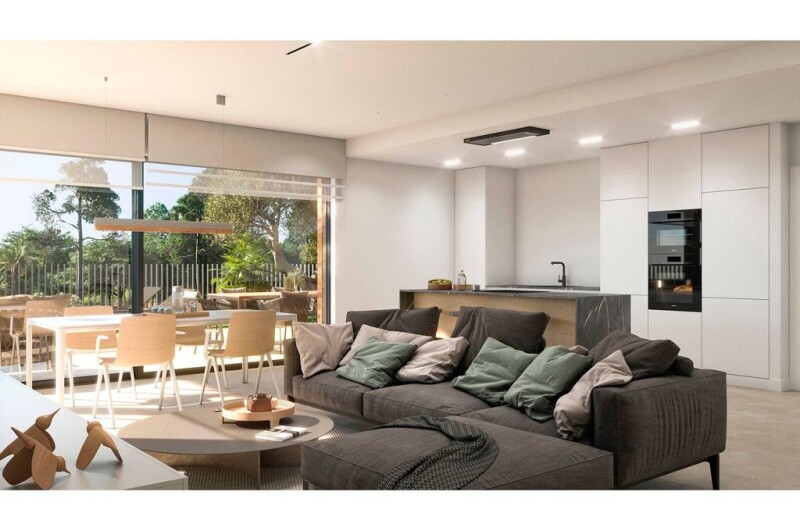 New, frontline golf project in the exclusive La Serena Golf resort. The resort includes an impressive 18-hole golf course, and a Club House, with a pro-shop, an a-la-carte restaurant, and a terrace bar with views of the golf course and the Mar Menor. Exclusive residential project on the golf course, comprising apartments, as well as detached villas. The project will include various community areas offering fantastic views of the golf course, including large infinity pools with a jacuzzi area, padel courts, and children’s playgrounds. Modern villas on one level with 3 bedrooms and 3 bathrooms (2 en-suite), plus a basement/garage, and a solarium. The main living area is open plan, with large windows opening onto a pergola-covered terrace and pool and garden area. The external stairs lead to the spacious 73m2 solarium, where the Mediterranean climate can be enjoyed all year ‘round. Internal stairs lead to the basement /garage, with a storage room, and a laundry room. The villas include pre-installation for ducted A/C, electric blinds, fully equipped bathrooms, solar panels to lower energy consumption, and private underground parking. The apartments are distributed in buildings of three floors each and are available in different models: ground floor models with private garden, mid-floor models with a spacious terrace, and penthouses with a private solarium. All apartments have a spacious and open plan living area combining the lounge, dining area and kitchen into a singles space. The large windows in the lounge open onto a pergola-covered terrace, or an uncovered terrace in the ground floor models. Depending on the location of the apartment, some apartments enjoy unobstructed golf course views. The apartments include pre-installation for ducted A/C, electric blinds, fully equipped bathrooms, and a parking space in the underground garage. The town of Los Alcazares is less than 1,5km from the project, with a complete selection of daily services and amenities. The area is known for its variety of golf courses, as well as other outdoor activities, like hiking or mountain biking, while not forgetting the many water activities available at the beautiful beaches of the Mar Menor. The convenient AP7 motorway connects the project with other places of interest, as well as Murcia airport in 30 minutes, or Alicante airport in little over an hour. Contact us for more information and a viewing!.