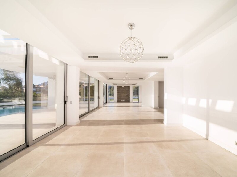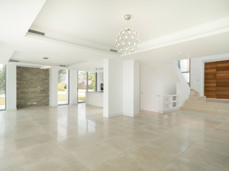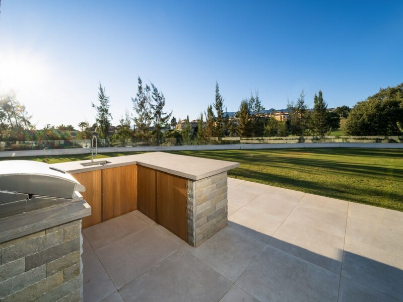 This impressive newly built villa is situated in an enviable location, due to its elevated position, within the Golf Resort Marbella urbanization, offering wonderful views of the golf course and the sea. This villa for sale in Marbella has a magnificent entrance with a front door large modern wood and many windows that bring natural light into the house from every corner. The house also enjoys a closed garage and carport on the other side. On the main level, there is 1 bedroom, guest toilet, large living room with plenty of space and light, as well as a modern open plan kitchen. Both the kitchen and the living room have direct access to the wonderful garden with its own private pool and a large barbecue. On the first floor there are 3 more bedrooms, one of them is the master suite with its own private terrace and a large bathroom with open views to the Mediterranean Sea. This villa in Marbella has 2 more bedrooms, one on the ground floor and one in the basement, in total 5 bedrooms and 5 bathrooms. The house has underfloor heating, air conditioning and solar panels. This villa for sale in Marbella was built in 2018 and everything is in excellent condition, you just have to choose the furniture! Let yourself fall in love at first sight with this newly built house in Marbella, which gives the impression of having a very homely interior, to move in immediately or to spend your holidays. It is an ideal villa in Marbella East for a permanent residence or as your usual holiday home.